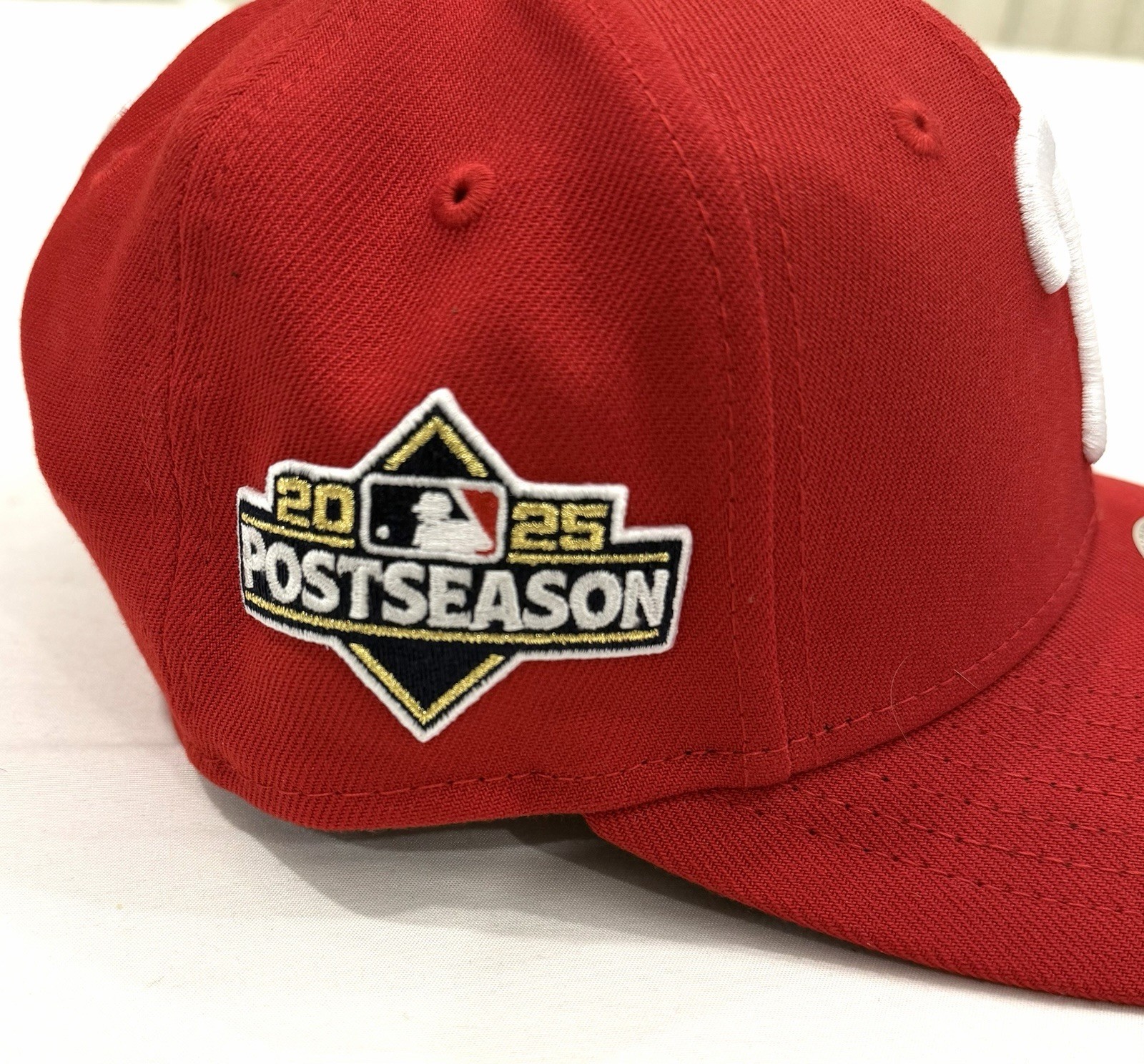 как выглядит Youth New Era Red Philadelphia Phillies 2025 MLB Postseason Patch 9SEVENTY фото