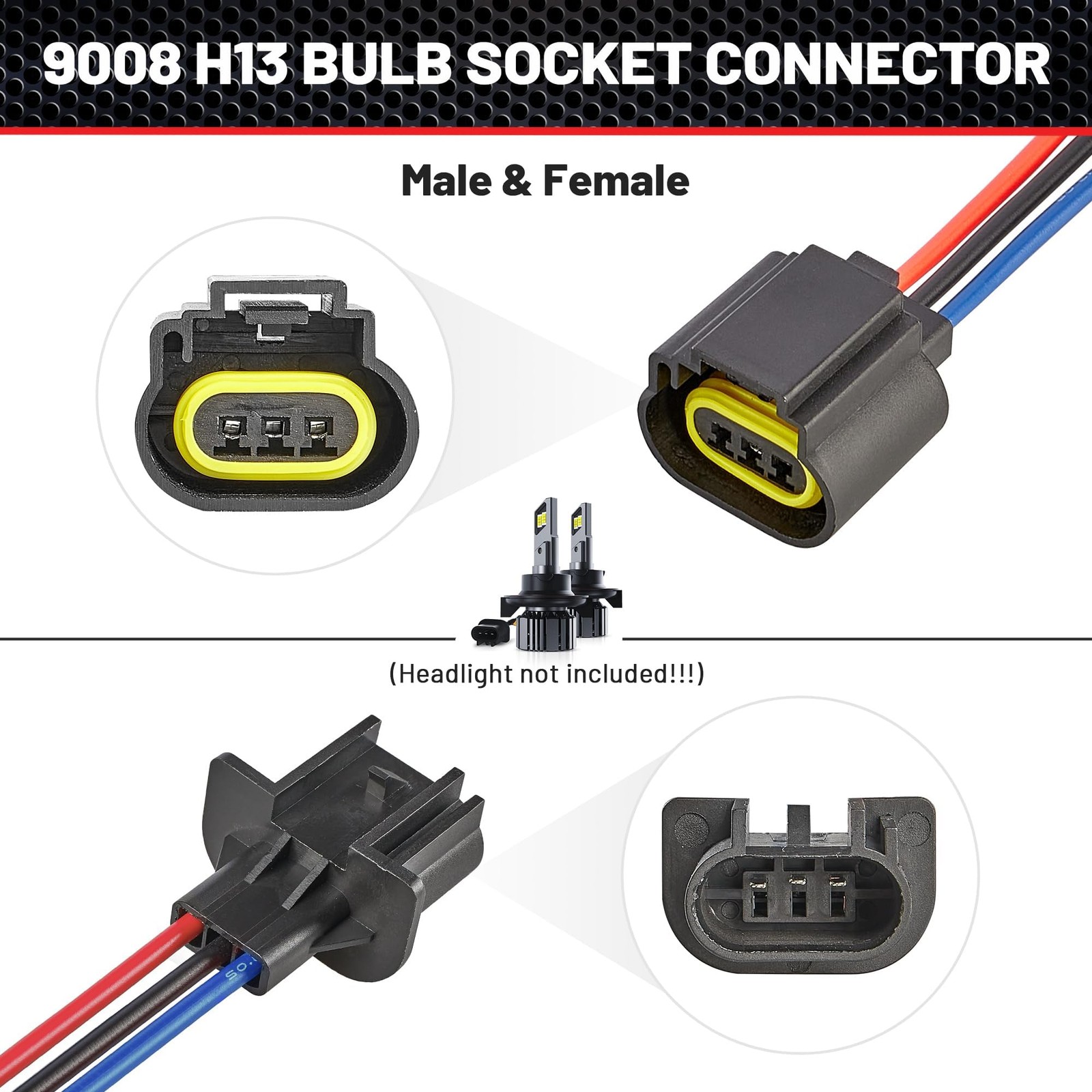 9008 H13 Socket 3 PIN Male Female Wiring Socket H13LL Headlight Adapter Uni...