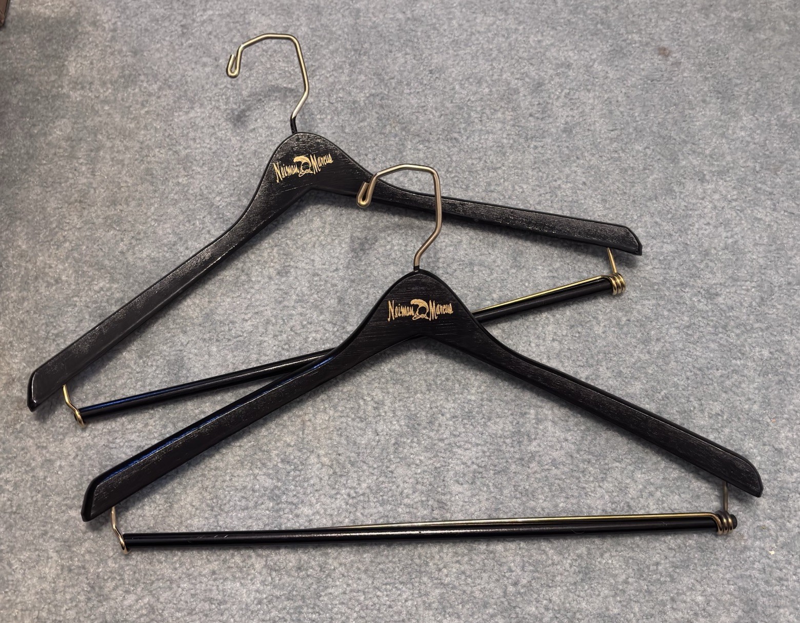 как выглядит 2 Vintage Neiman Marcus Wood Black Hangers фото