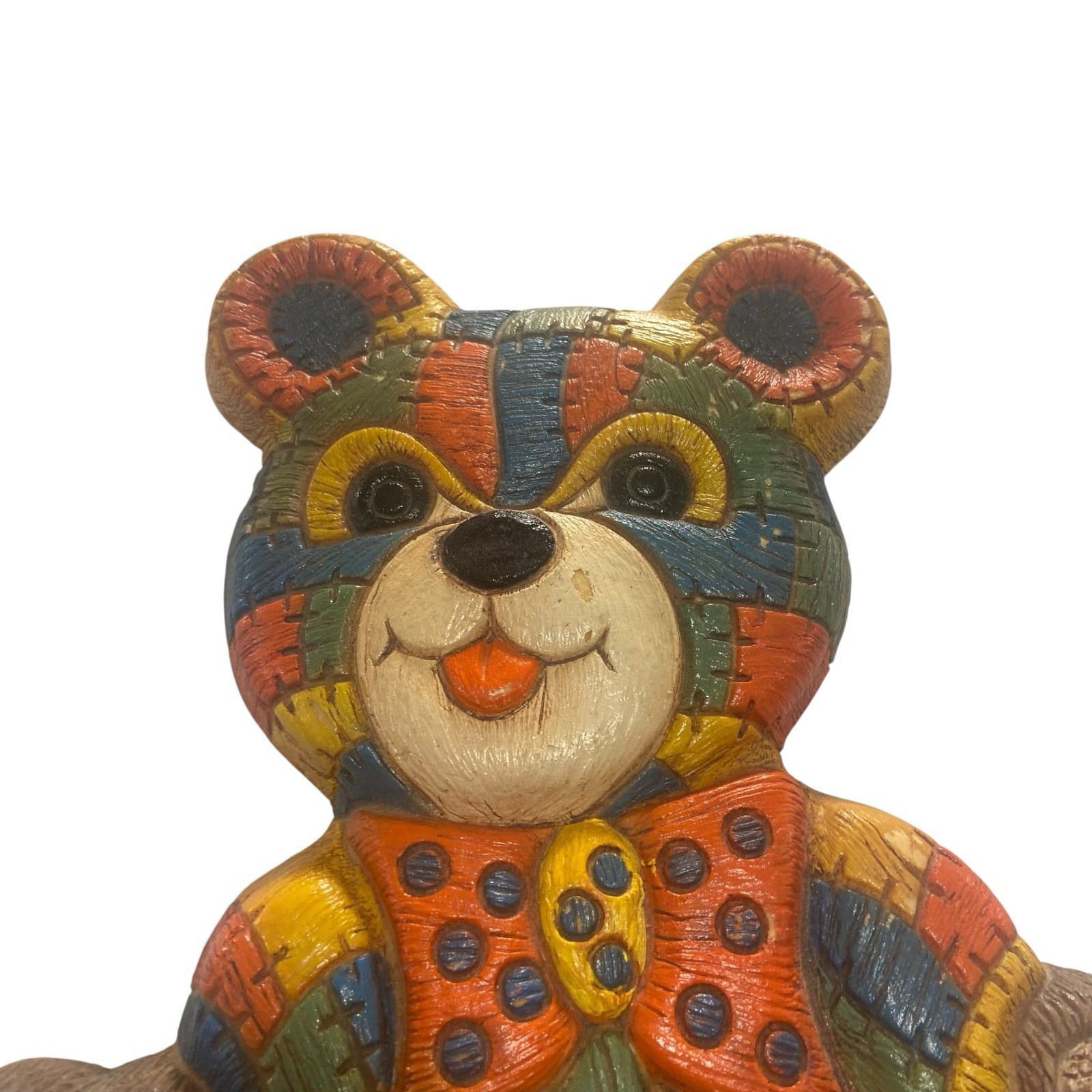 как выглядит Vintage Patchwork Teddy Bear Plaque Wall Hanging Quilted Design Foam Craft 1979 фото