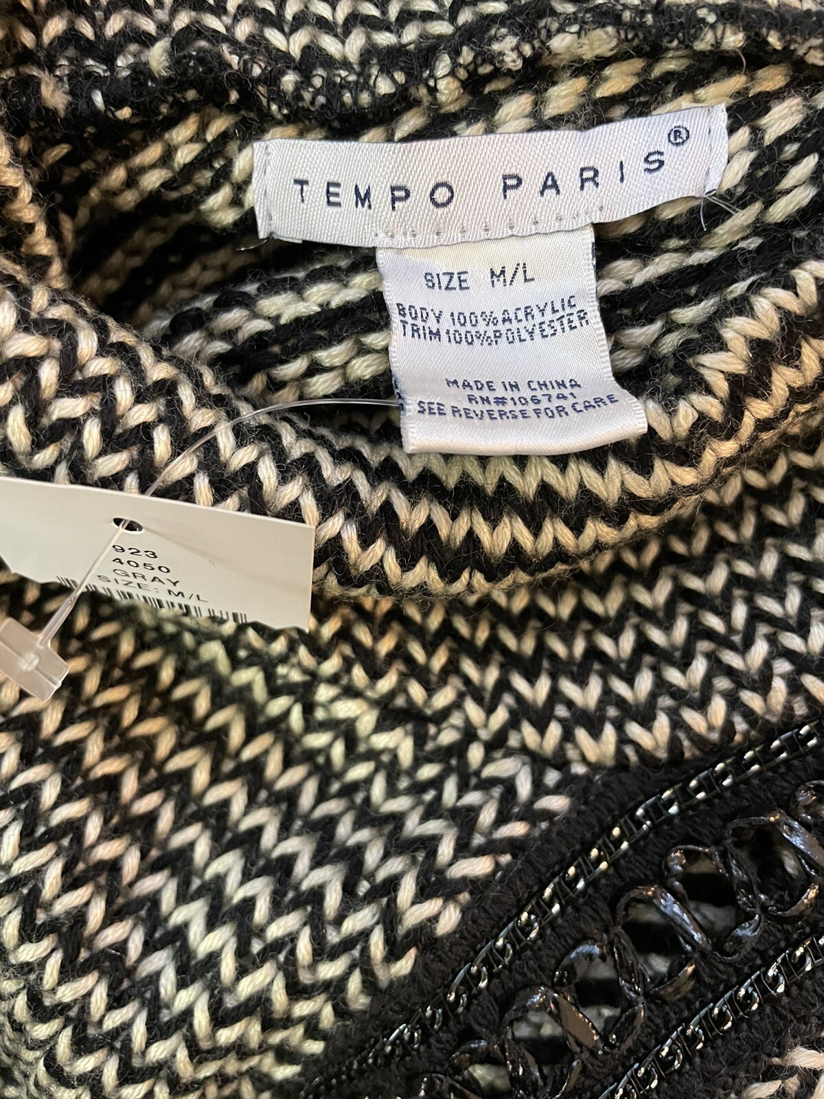 как выглядит NWT Tempo Paris Black Gray Knit Faux Suede Fringed Poncho Dolman Sleeve Asym M/L фото