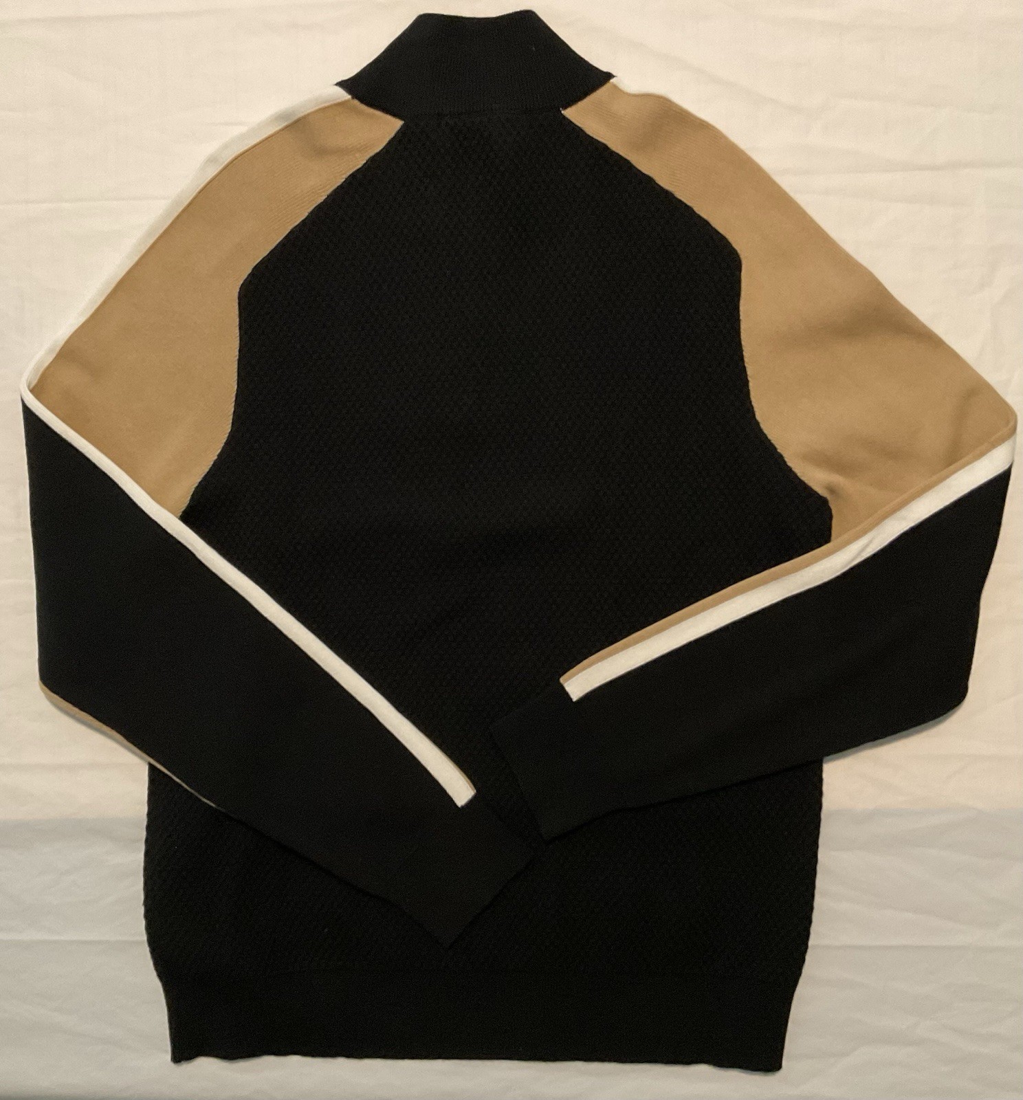 Men s Michael Kors 1/4 Zip Cotton Sweater Black Gold White Size Small 148