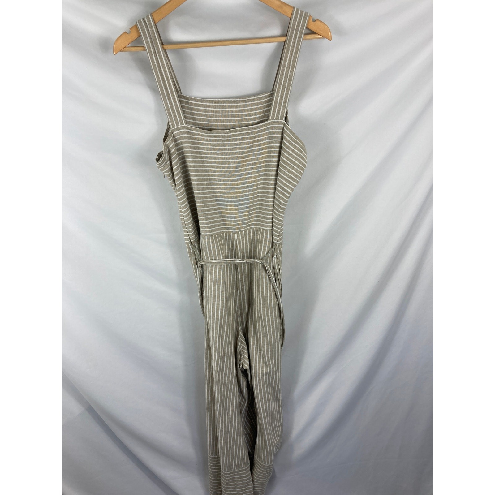 как выглядит Beachlunchlounge Linen Blend Stripe Tie Waist Jumpsuit Size Medium фото