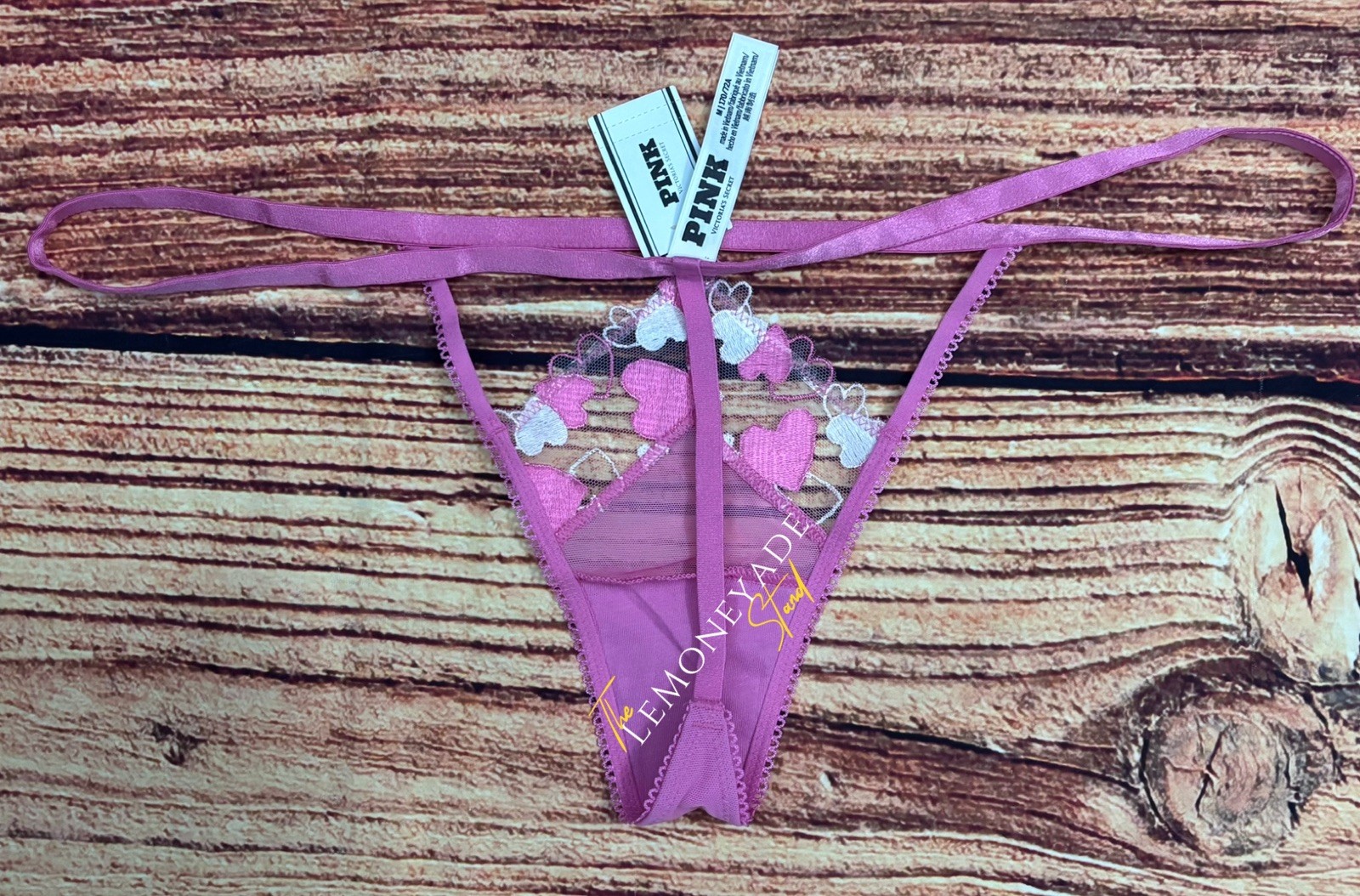 Victoria s Secret PINK Wink Pink Sweetheart Embroidery Cut Out V-String Thong M