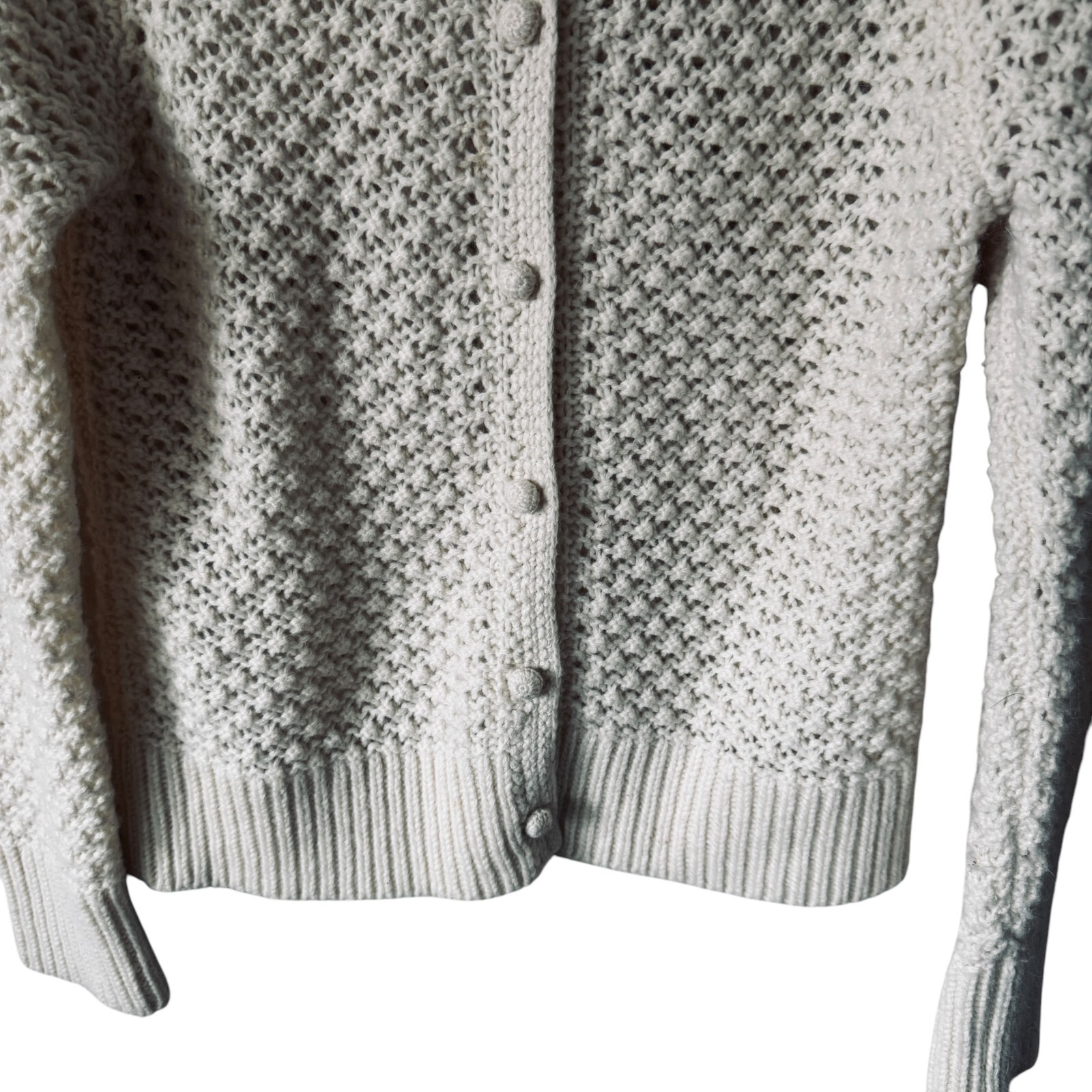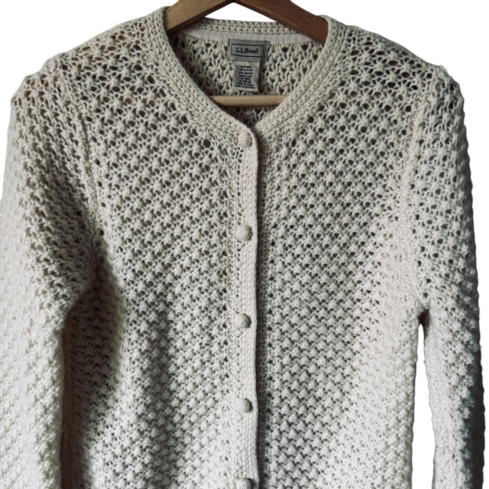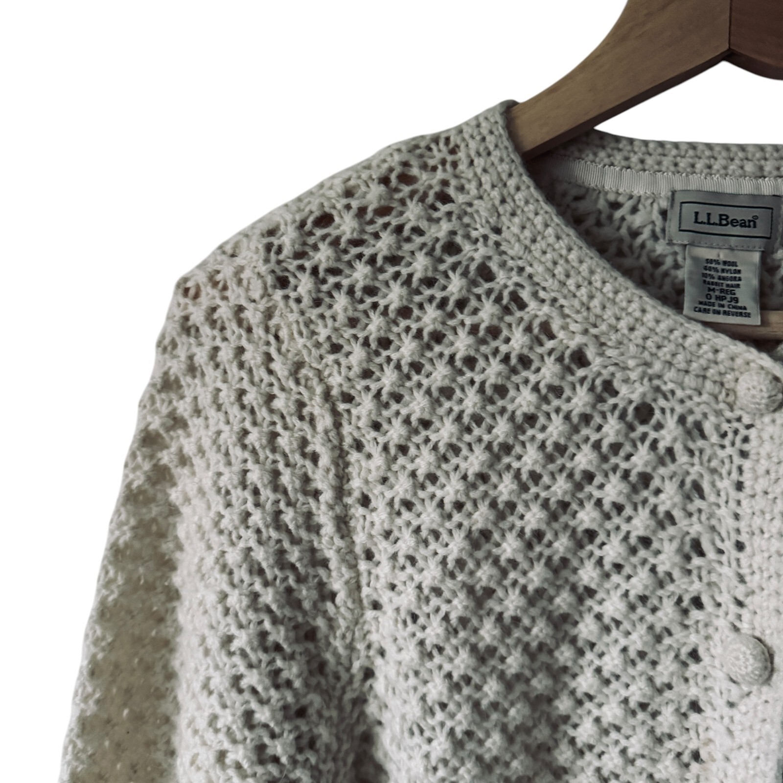 Vtg L.L.Bean Wool Angora Blend Sz Md Cardigan Cream Nubby Textured Loose Knit