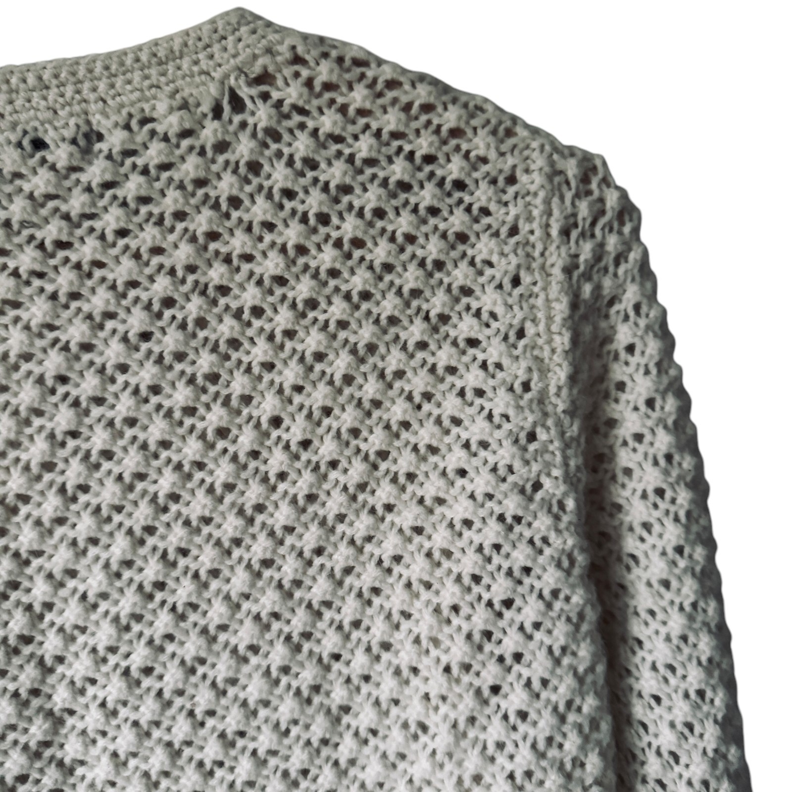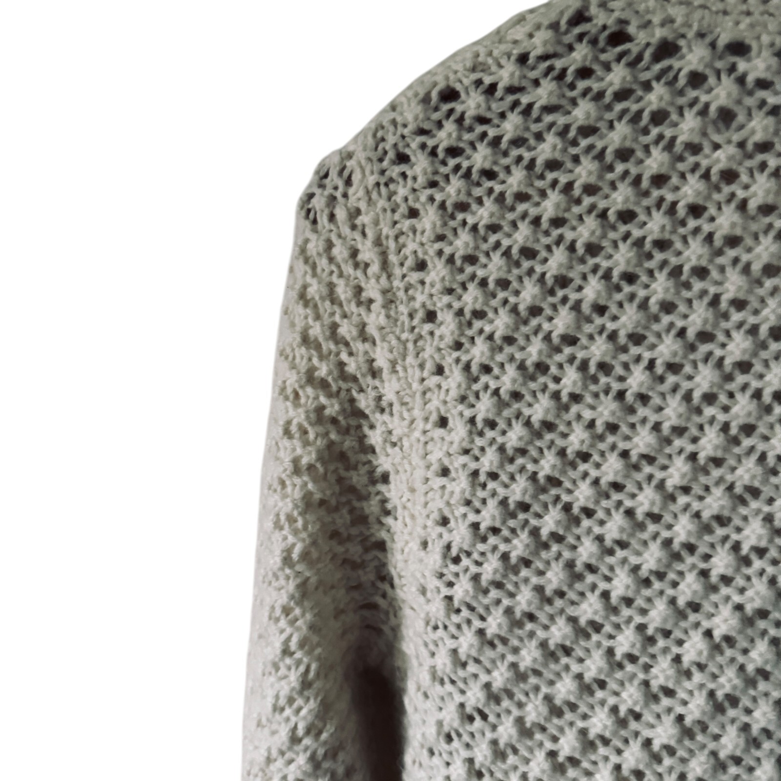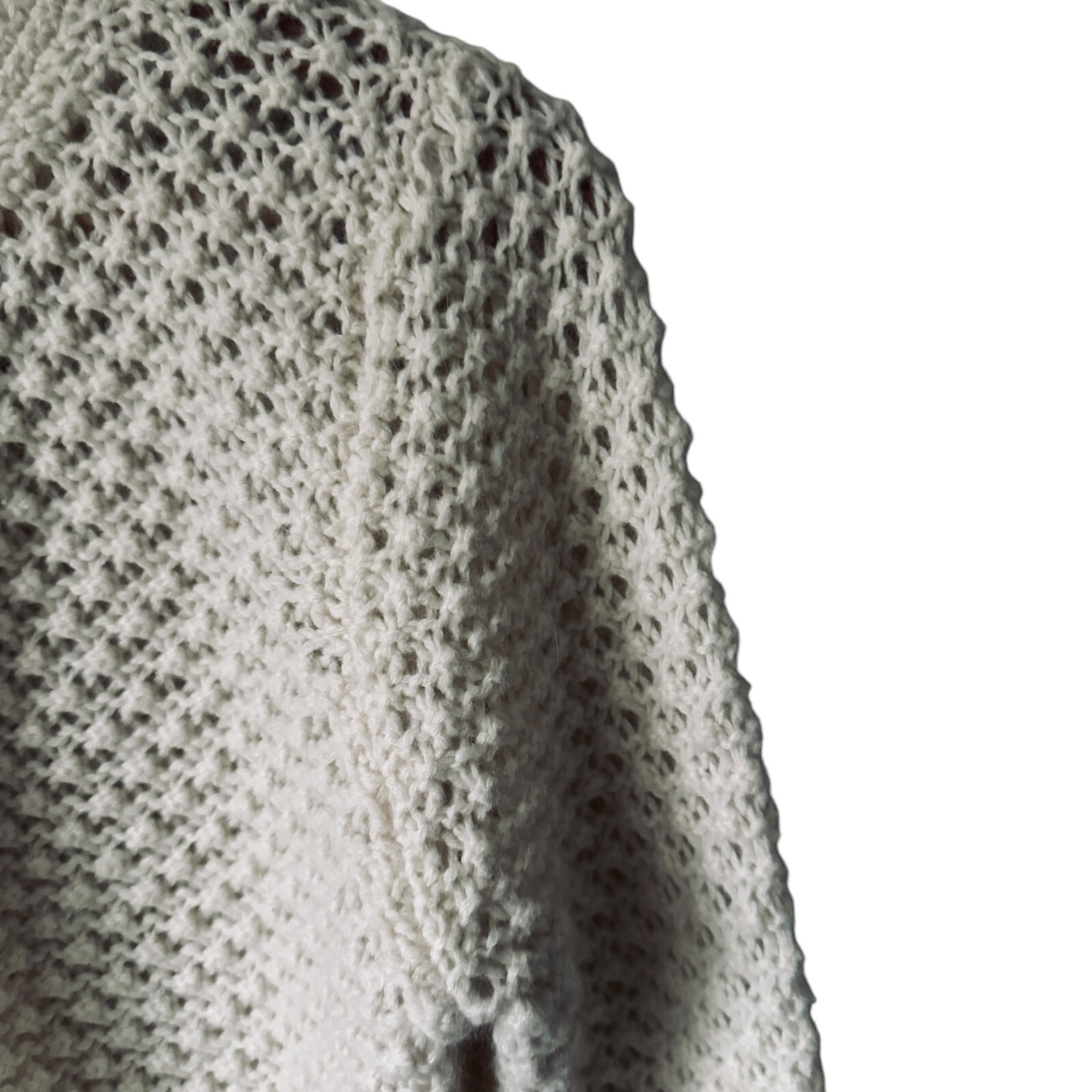 Vtg L.L.Bean Wool Angora Blend Sz Md Cardigan Cream Nubby Textured Loose Knit