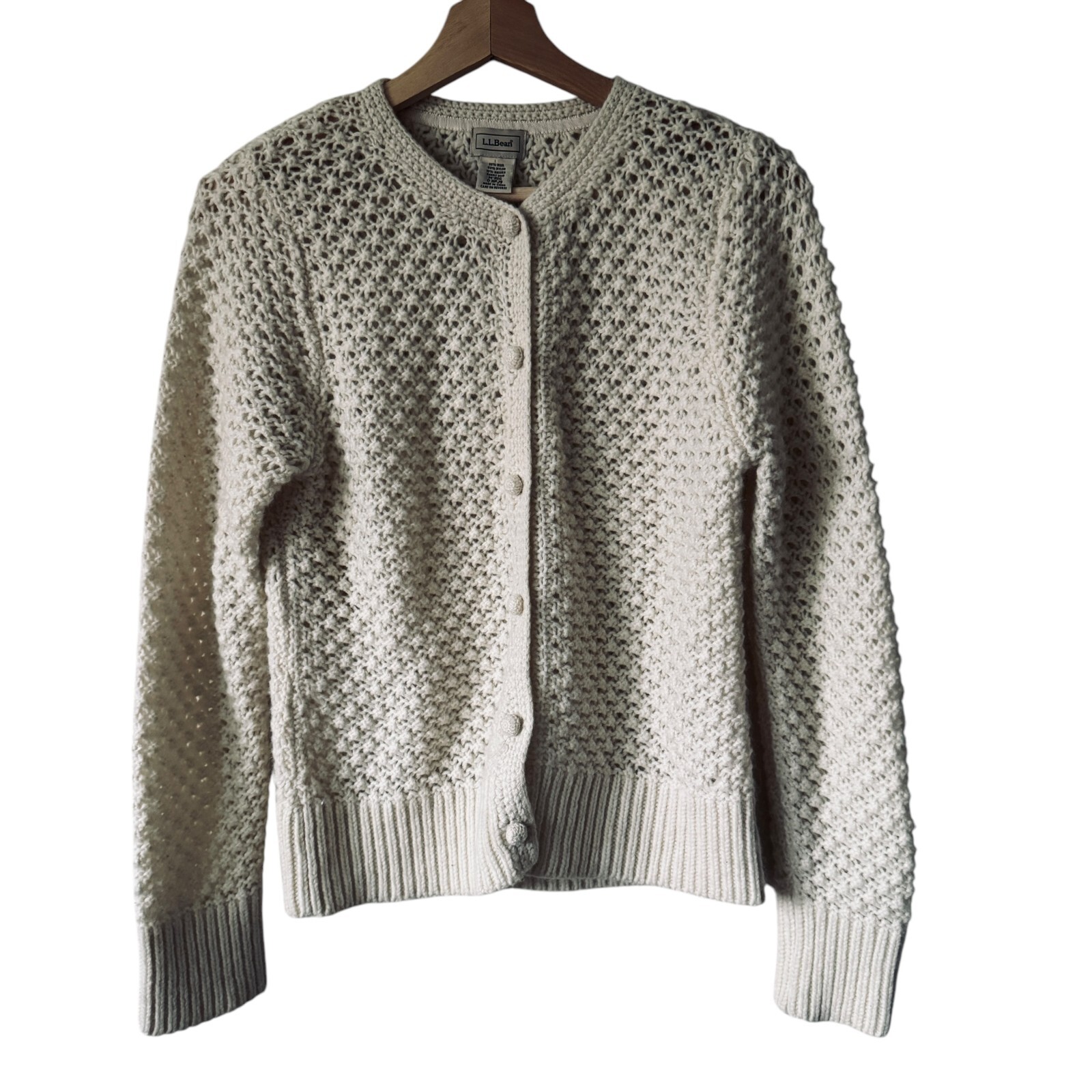 как выглядит Vtg L.L.Bean Wool Angora Blend Sz Md Cardigan Cream Nubby Textured Loose Knit фото