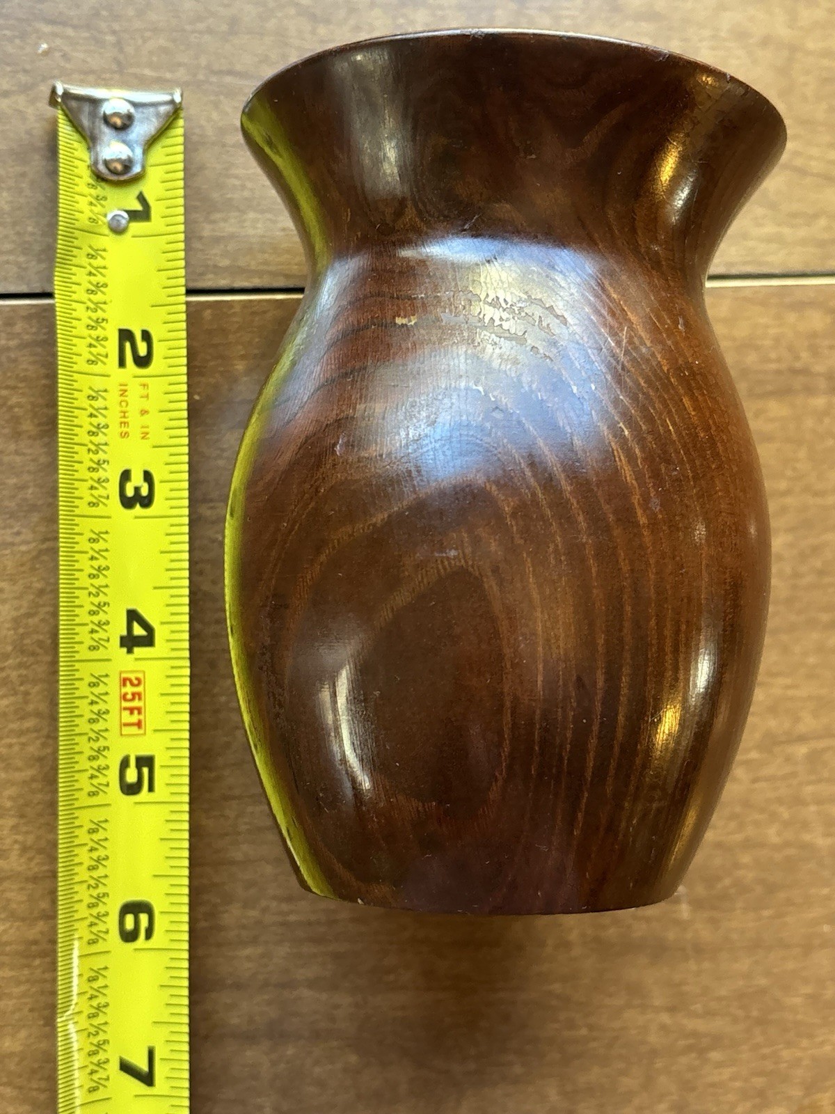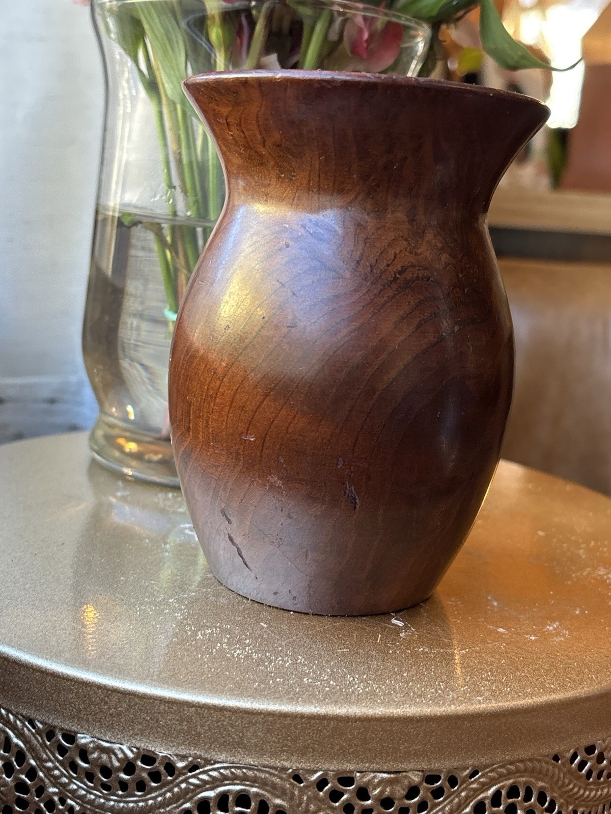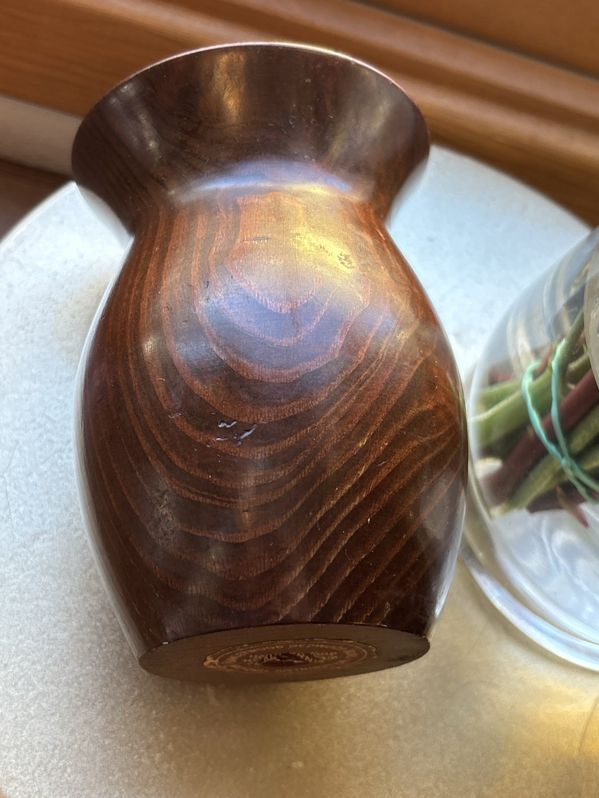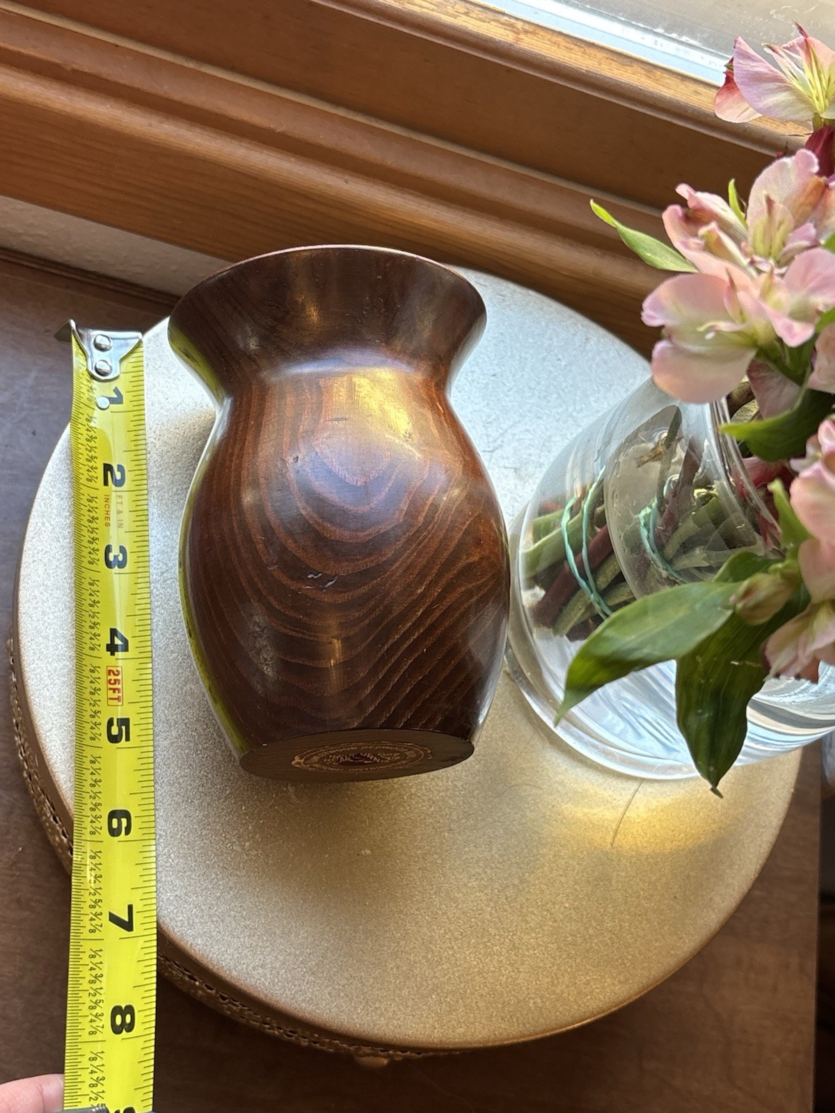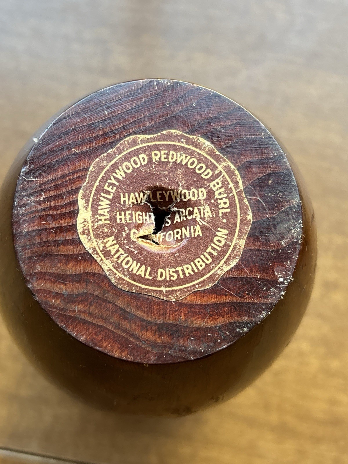 • Vintage MCM California Hand Turned Redwood Burl Vase Signed