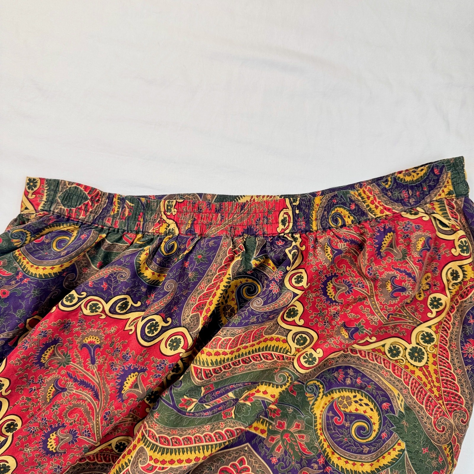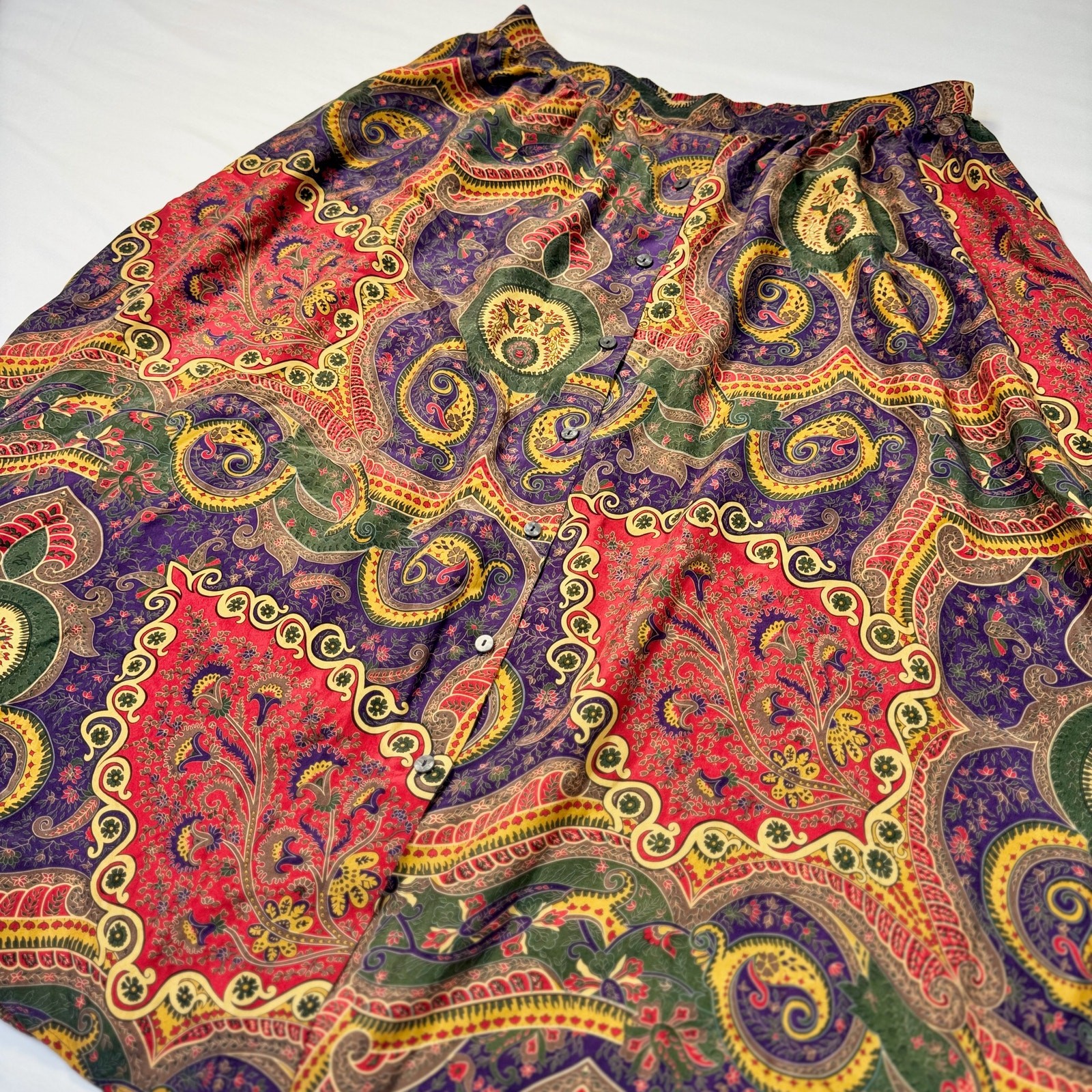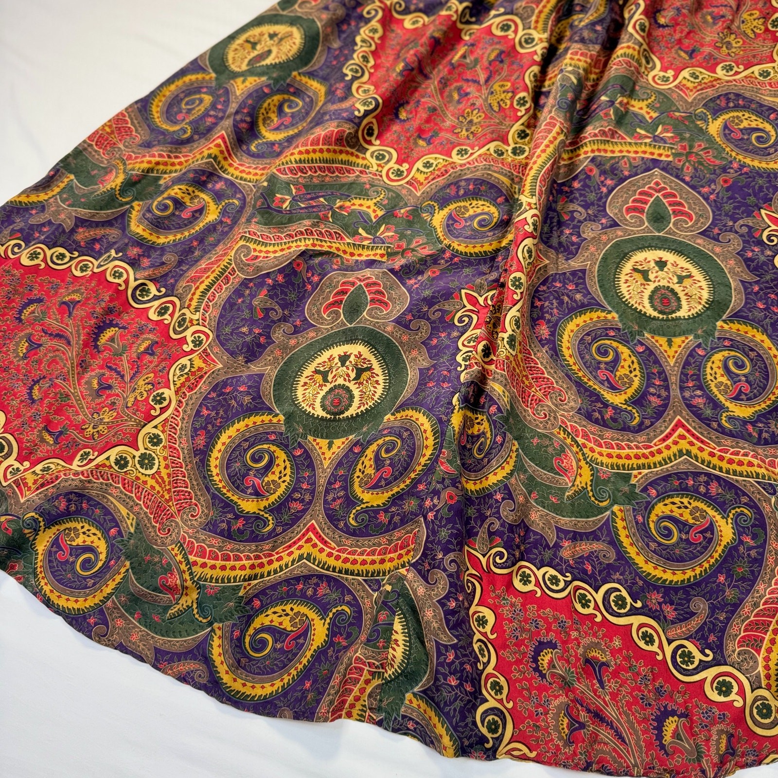 Valerie Stevens Pure Silk Paisley Midi Skirt Women s 2XL Vintage Boho 90s Retro