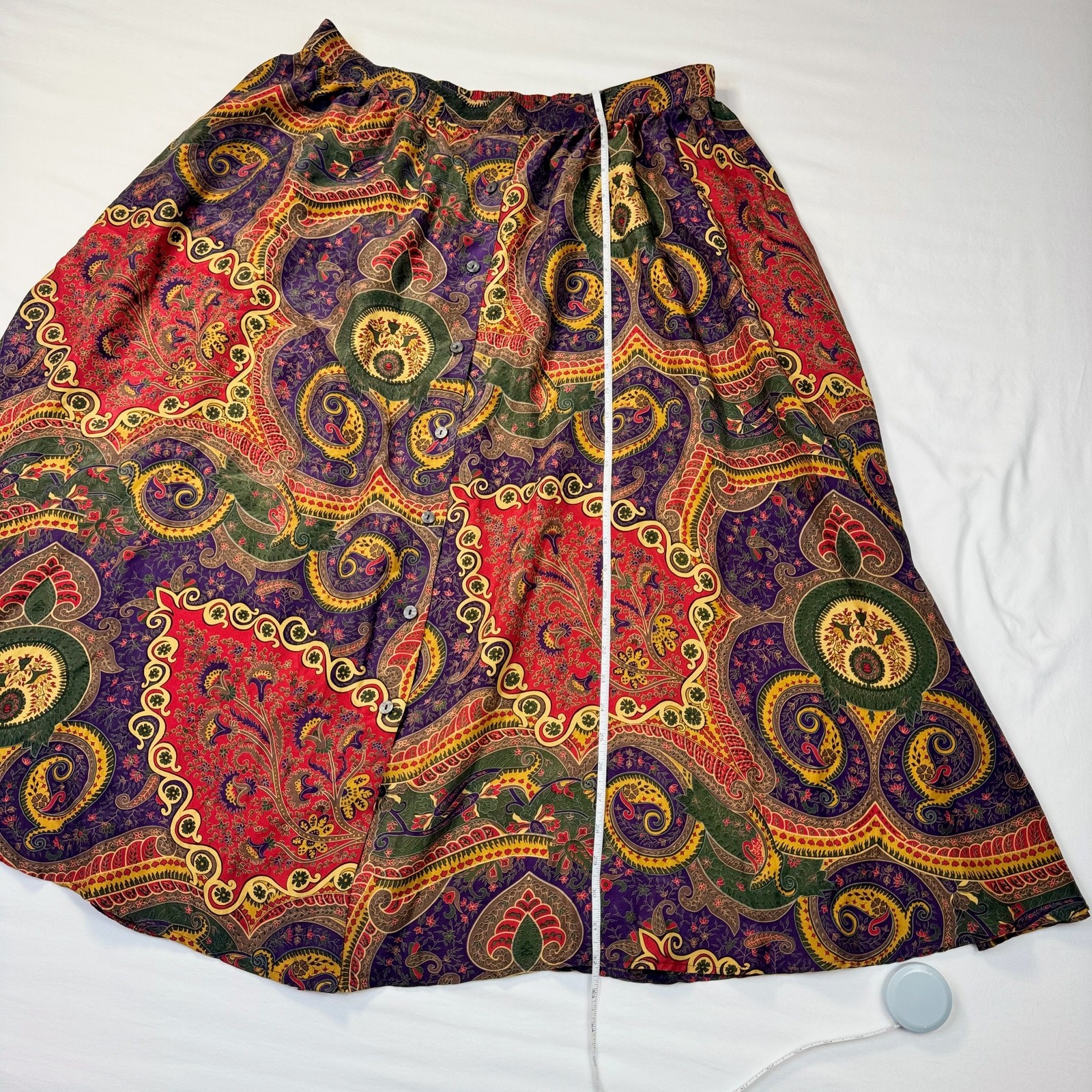 как выглядит Valerie Stevens Pure Silk Paisley Midi Skirt Women s 2XL Vintage Boho 90s Retro фото