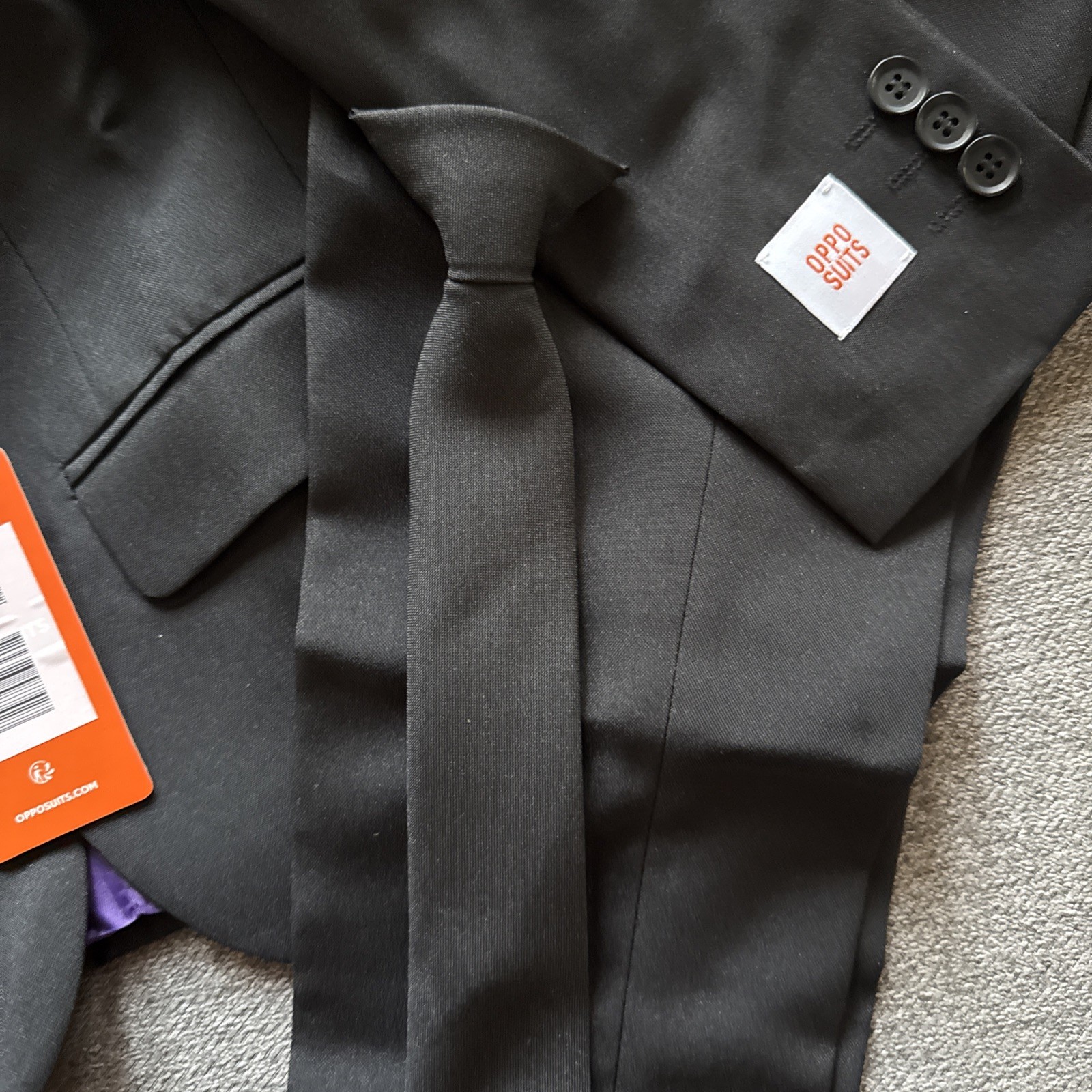 как выглядит Opposuits Teen Boys 6Y Black Knight Solid Suit set Jacket Pants Slim fit фото