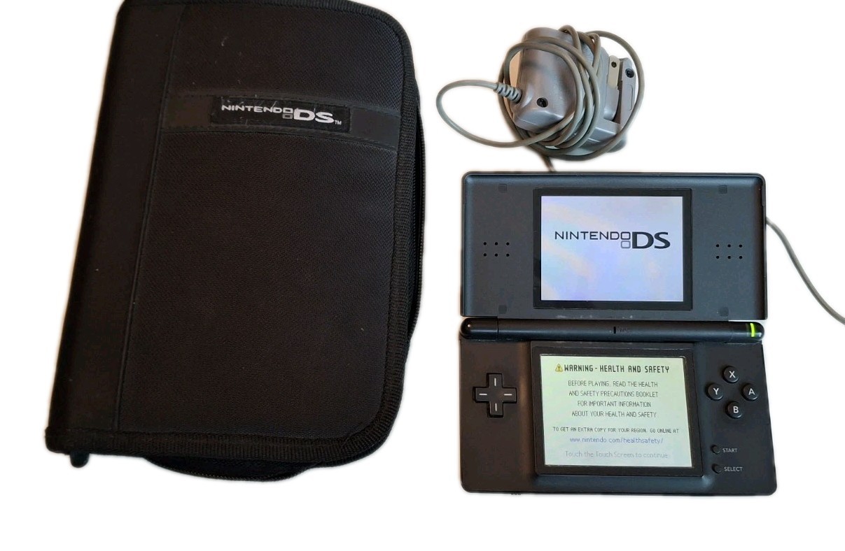 Nintendo DS Lite Black Handheld System/console, Power Cord, Stylis, Case, Works