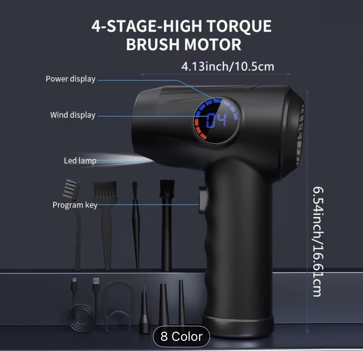 BXRR 4-Speed Brushless Motor Dust Blower Kit, Type-C Rechargeable, LCD Display