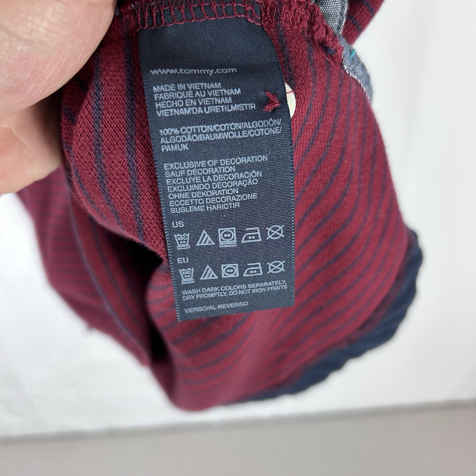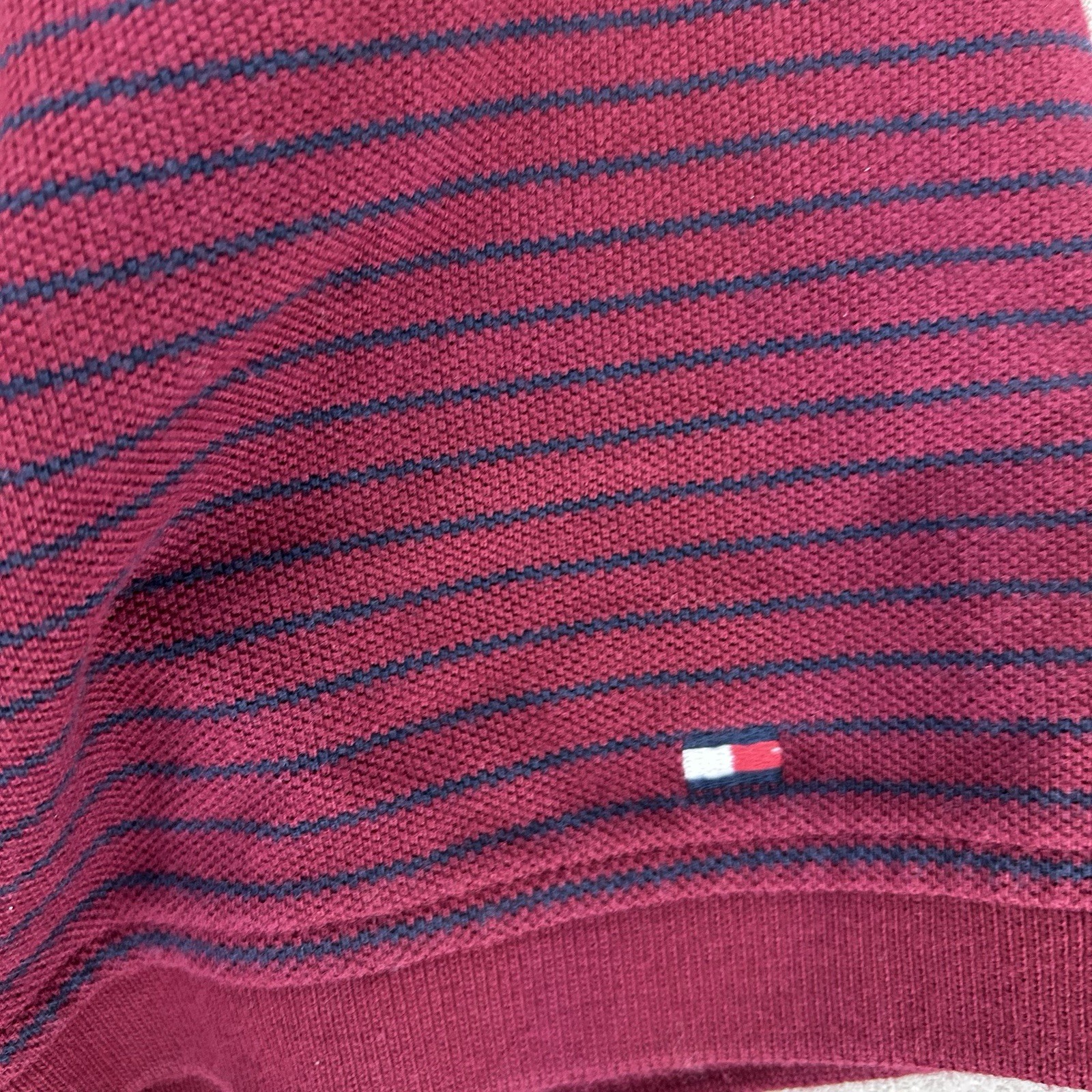 как выглядит Tommy Hilfiger Mens Size XL Slim Fit Red Striped Polo 1985 Badge Patch Spellout фото