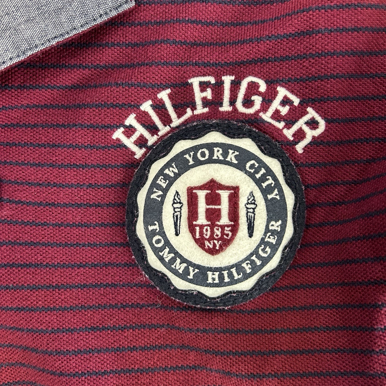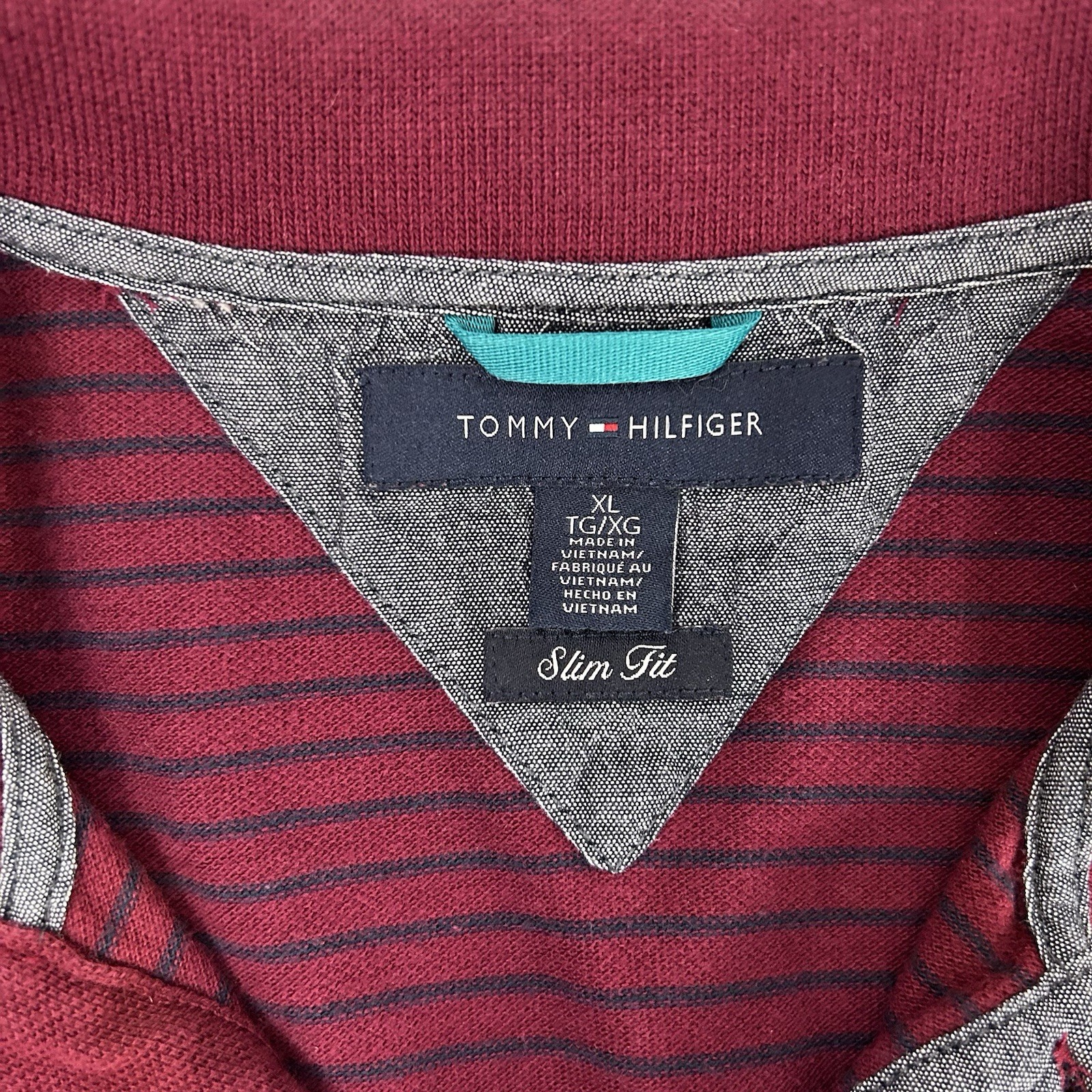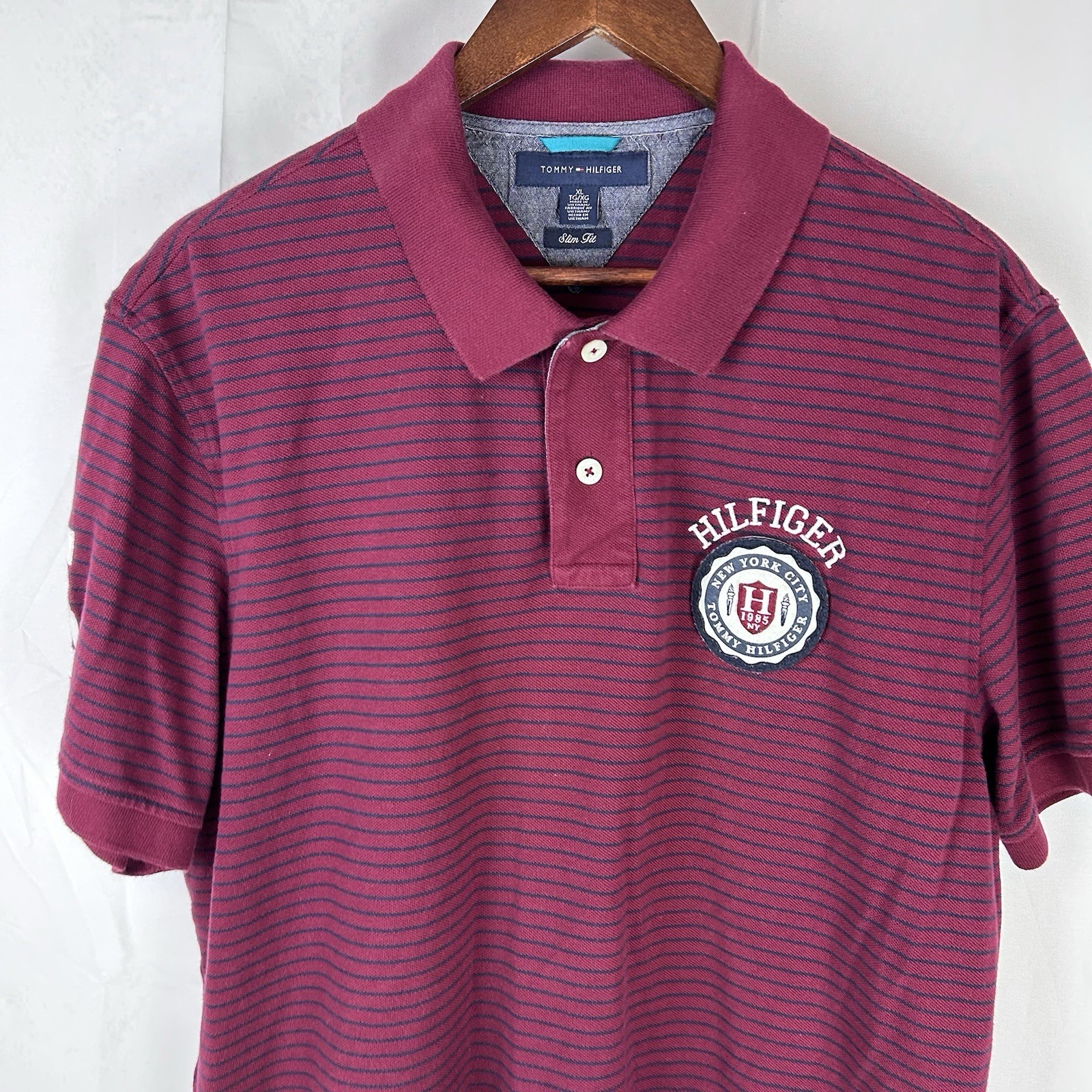 Tommy Hilfiger Mens Size XL Slim Fit Red Striped Polo 1985 Badge Patch Spellout
