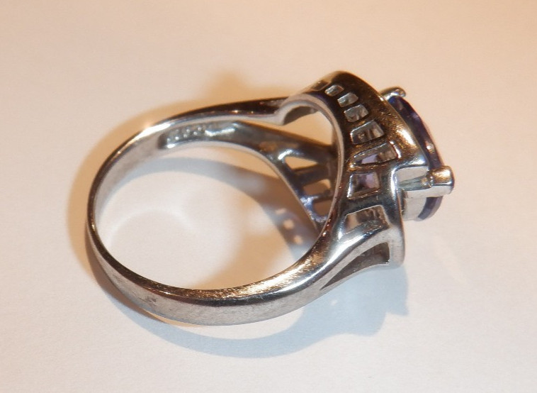 как выглядит Vintage Cocktail .925 Sterling Ring SZ 7 w/Lg. Amethyst Trillion Cut Gemstone фото