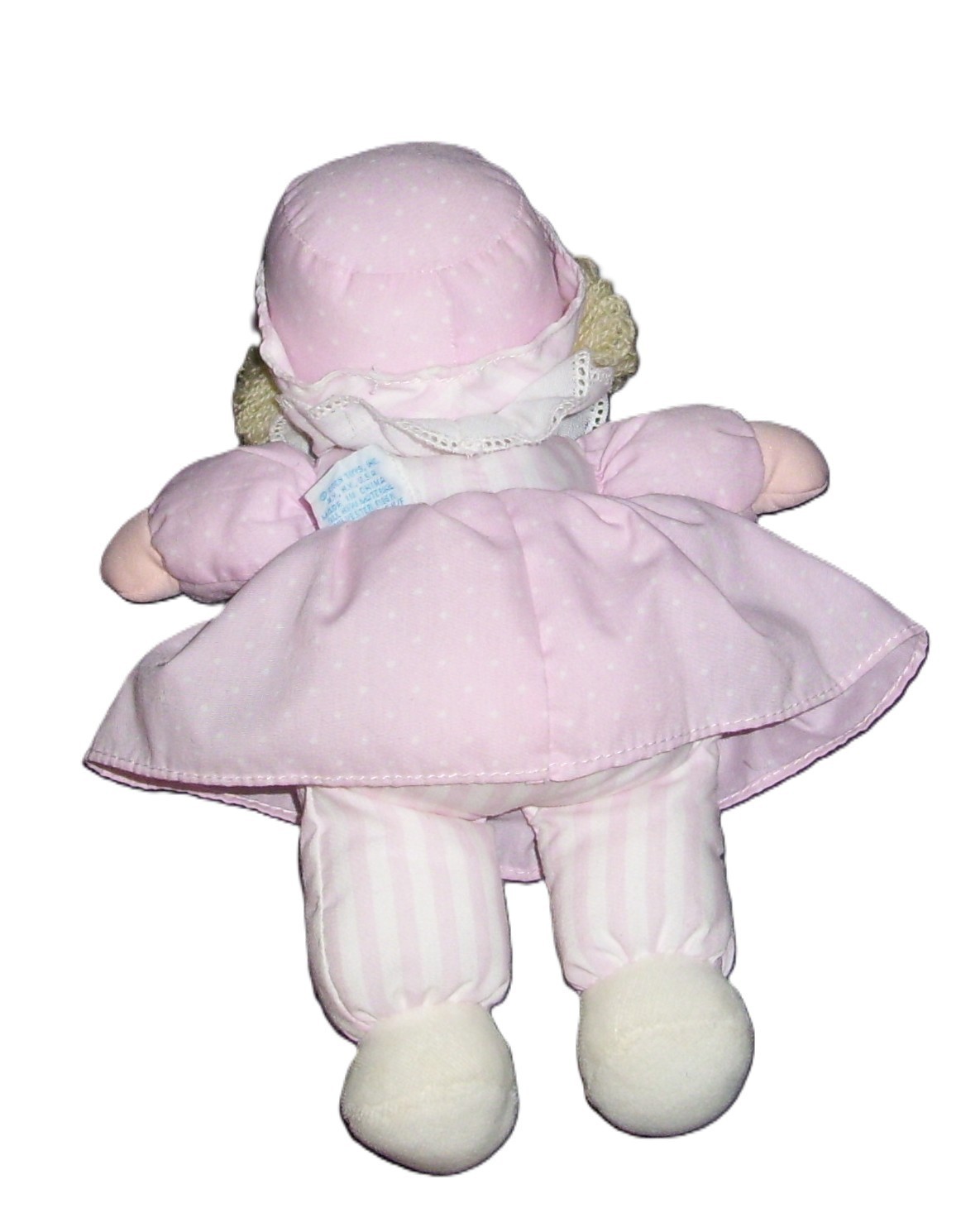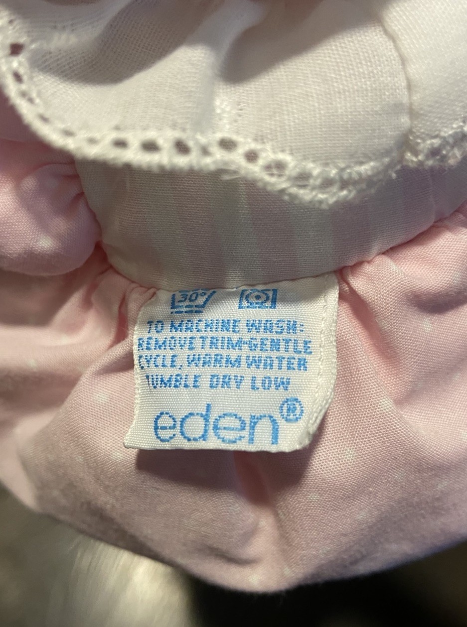 VTG Eden Pink Soft Terry Baby Doll Girl Doll Eyelet Gingham Bonnet Hat Bow Lovey