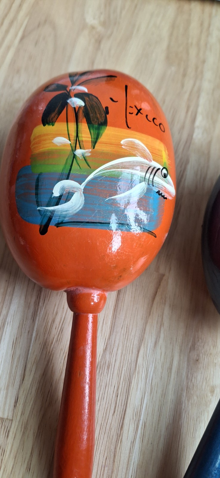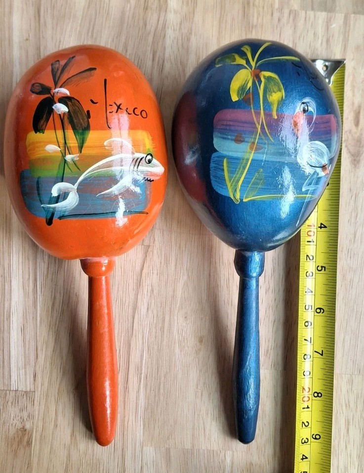как выглядит Vintage Wooden Maracas Pair Mexico Hand Painted Folk Music фото