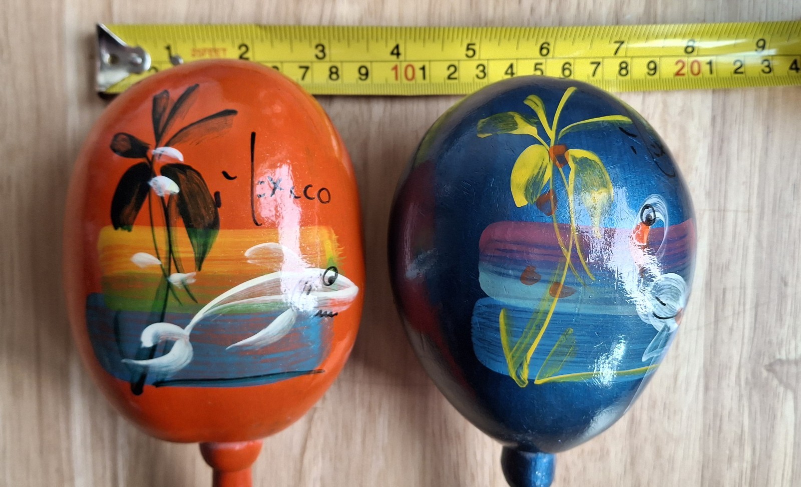 Vintage Wooden Maracas Pair Mexico Hand Painted Folk Music