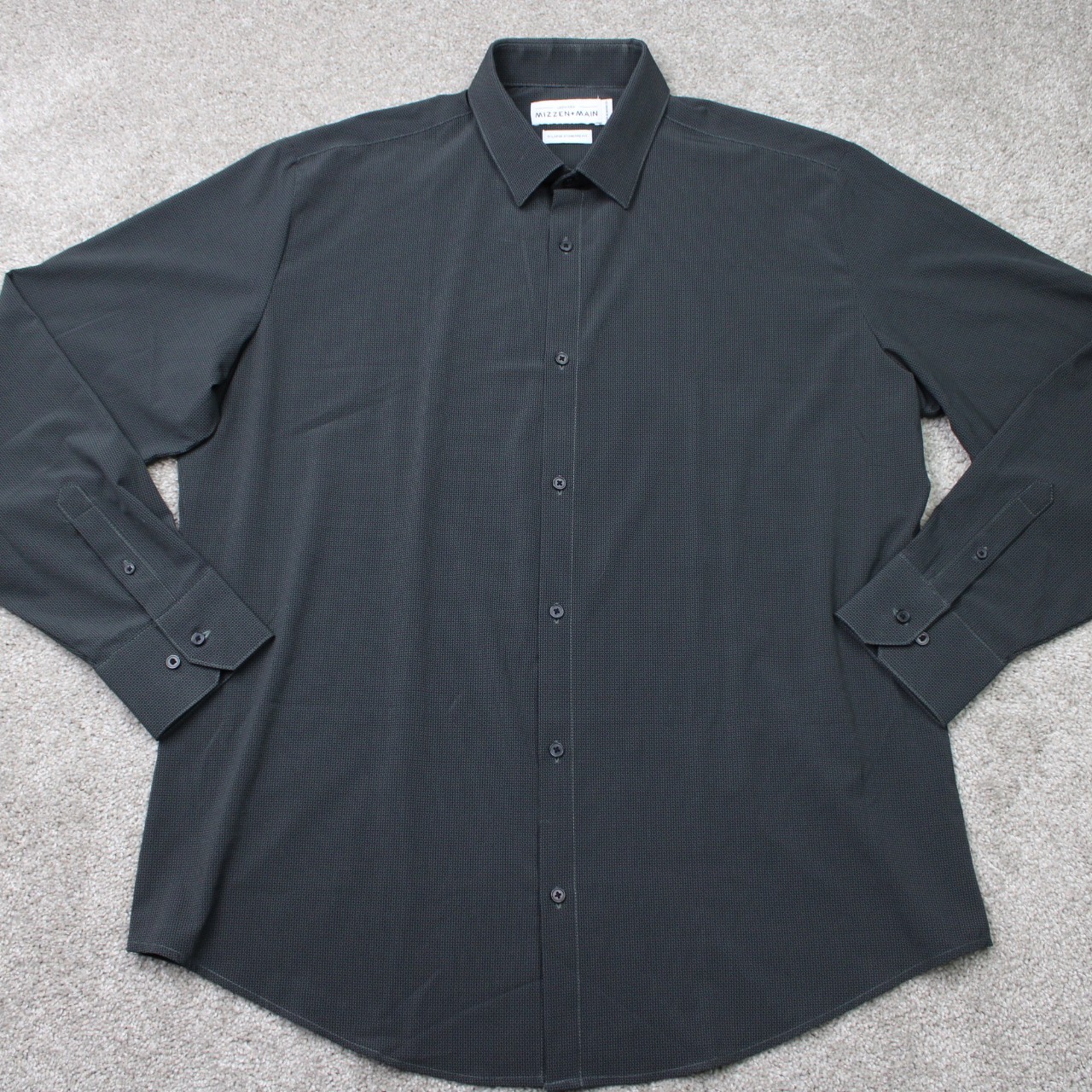 как выглядит Mizzen Main Shirt Mens XL Black Checkered Standard Fit Stretch Long Sleeve фото
