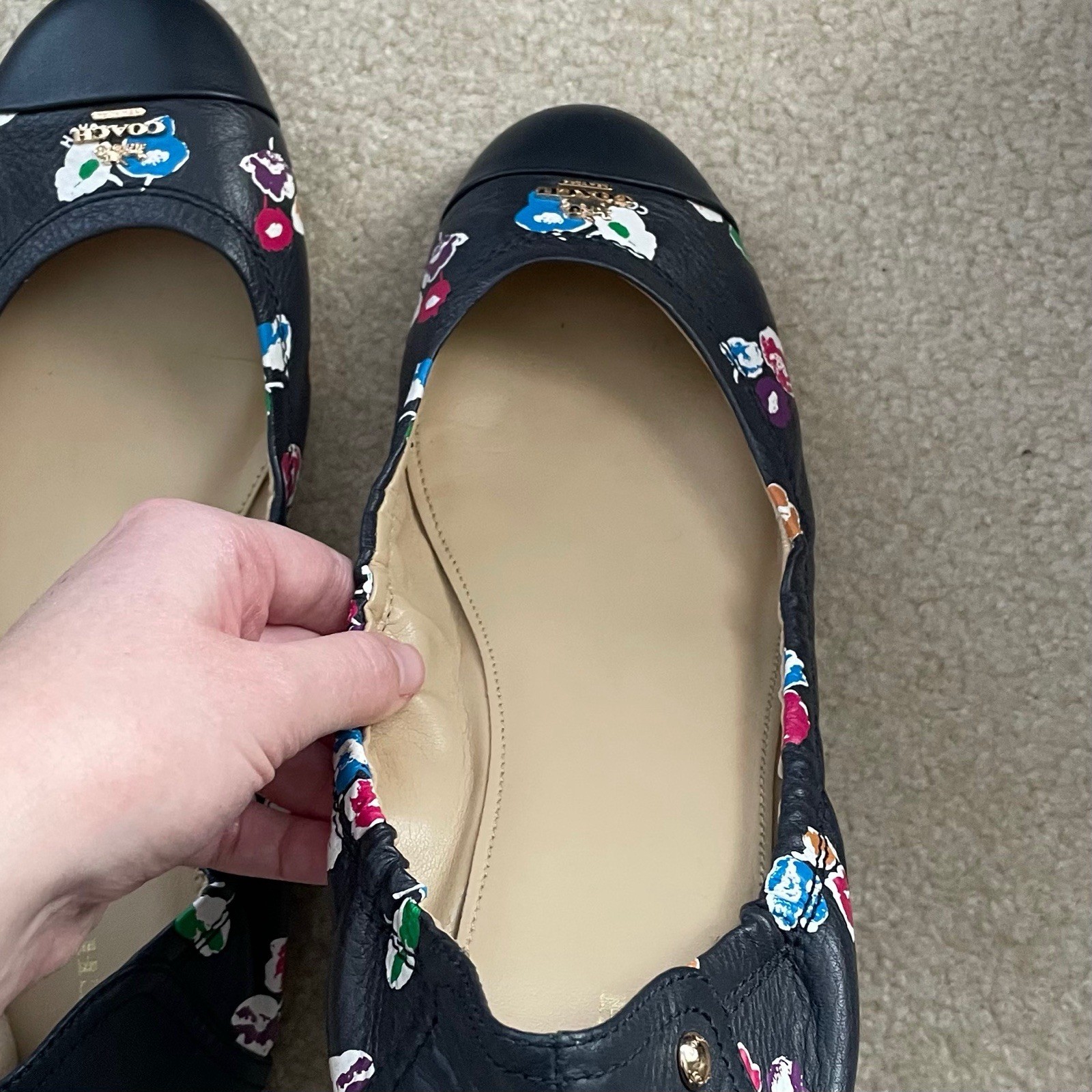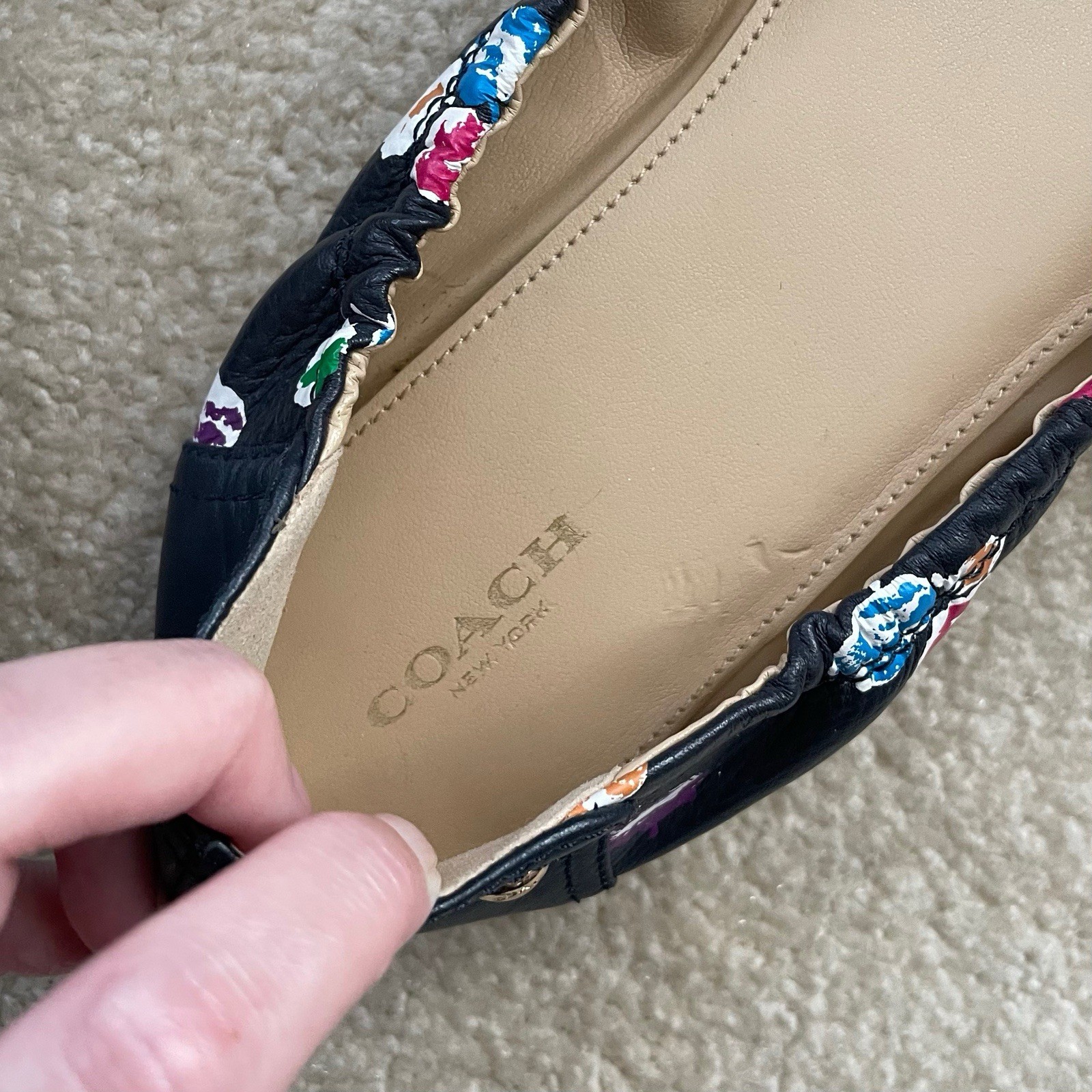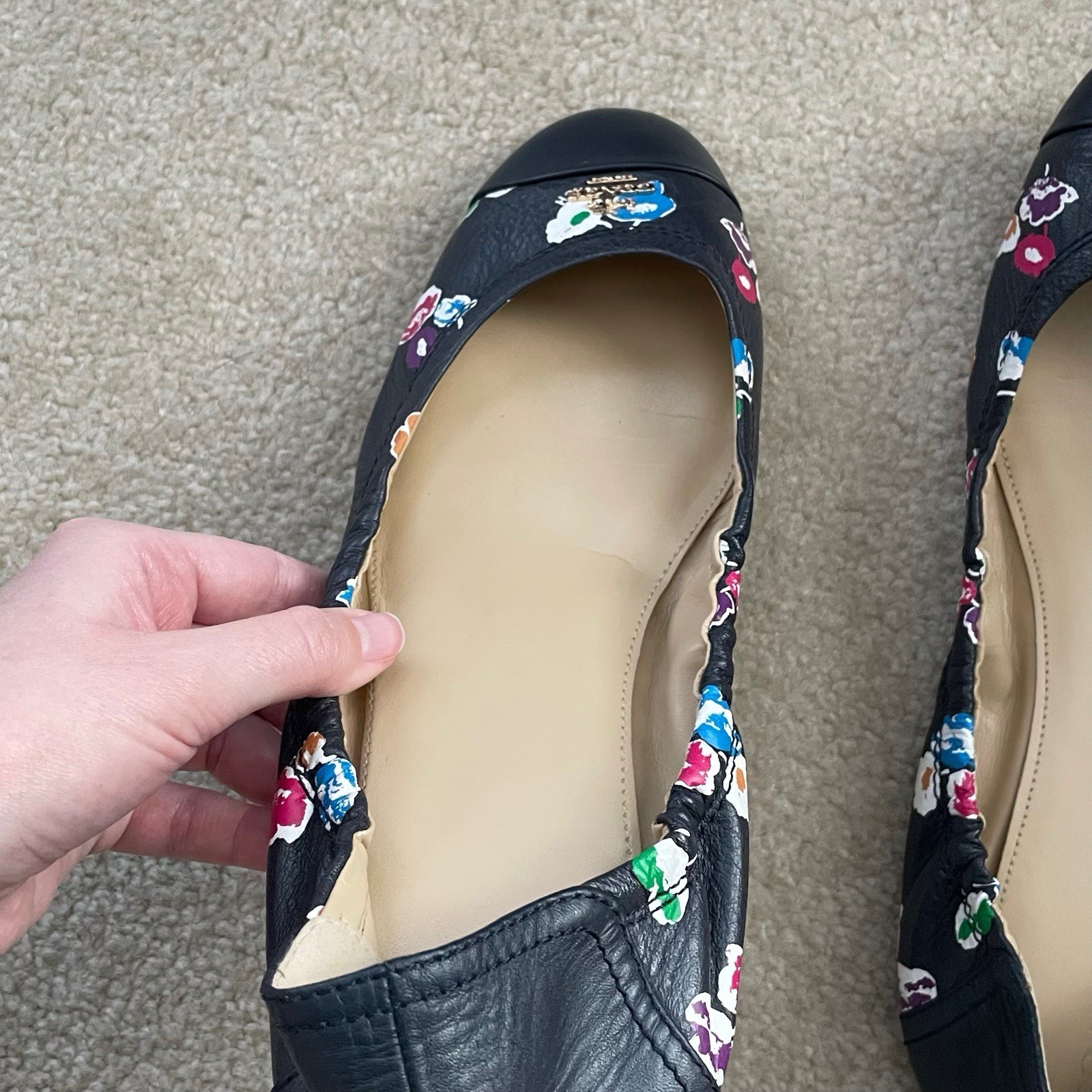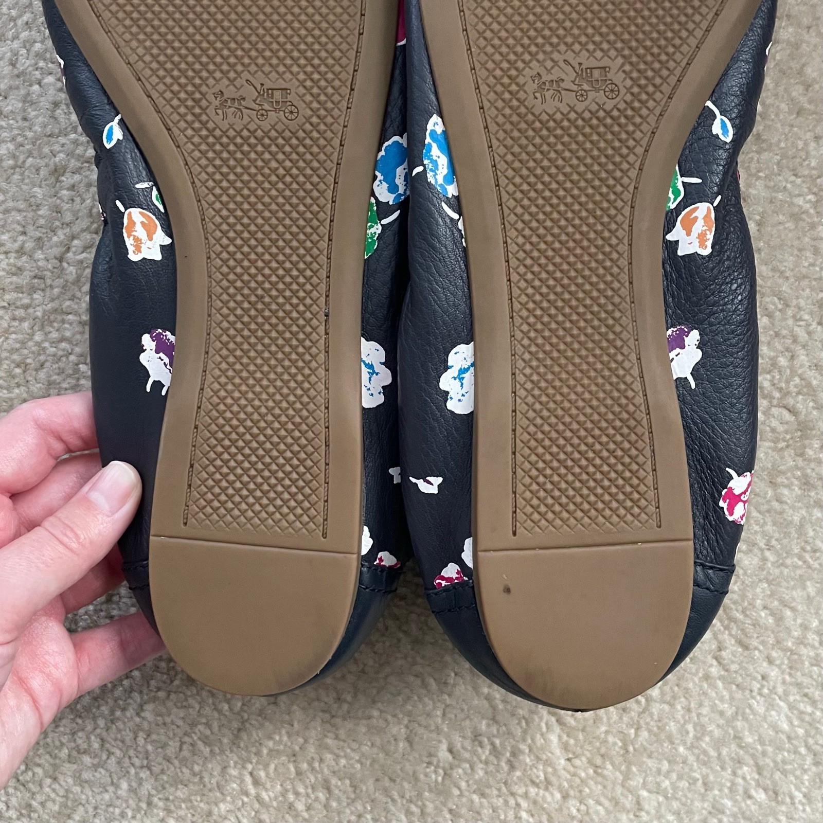 как выглядит Coach Camilla Navy Blue Floral Ballet Flats Size 11 фото