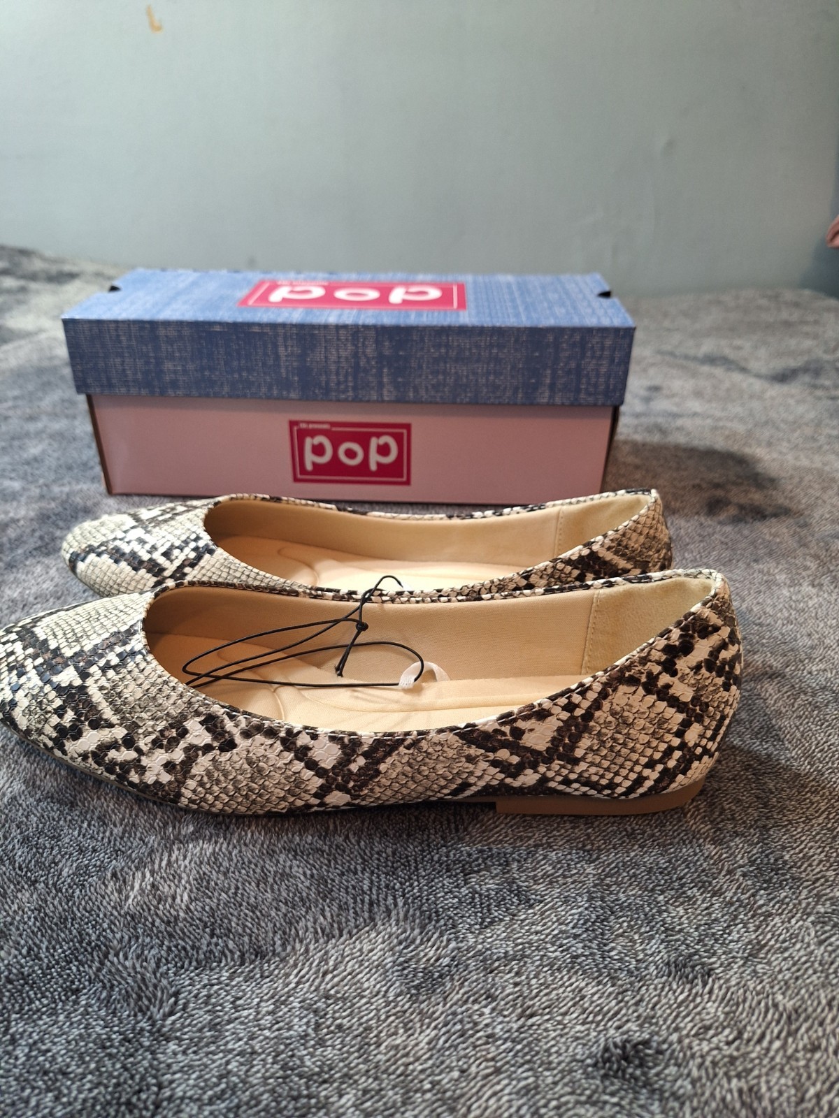 как выглядит Pop Comfort Fit Snake Print Ballet Flat Shoes Womens 9 Vegan Leather фото