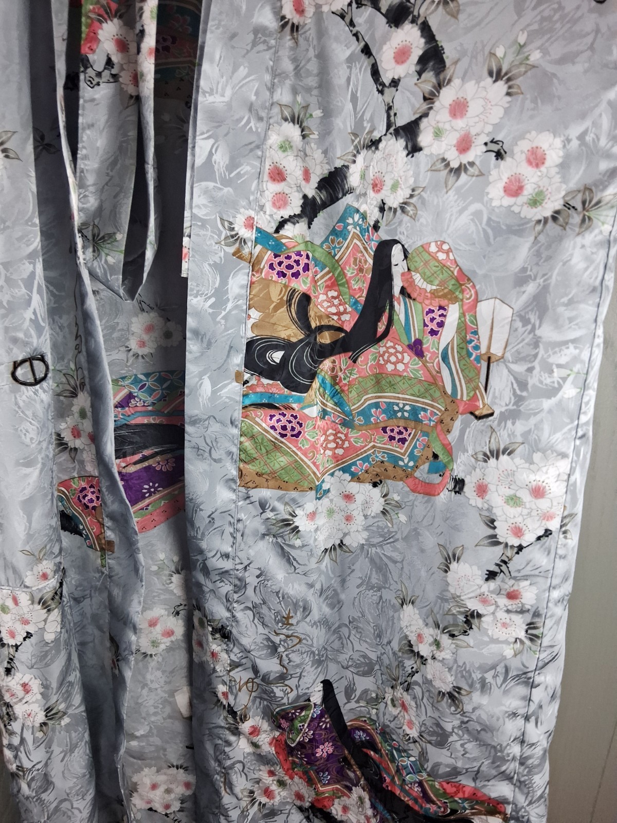 как выглядит Japanese Geisha Satin Polyester Kimono Robe Medium Gray Made in Japan Belted фото