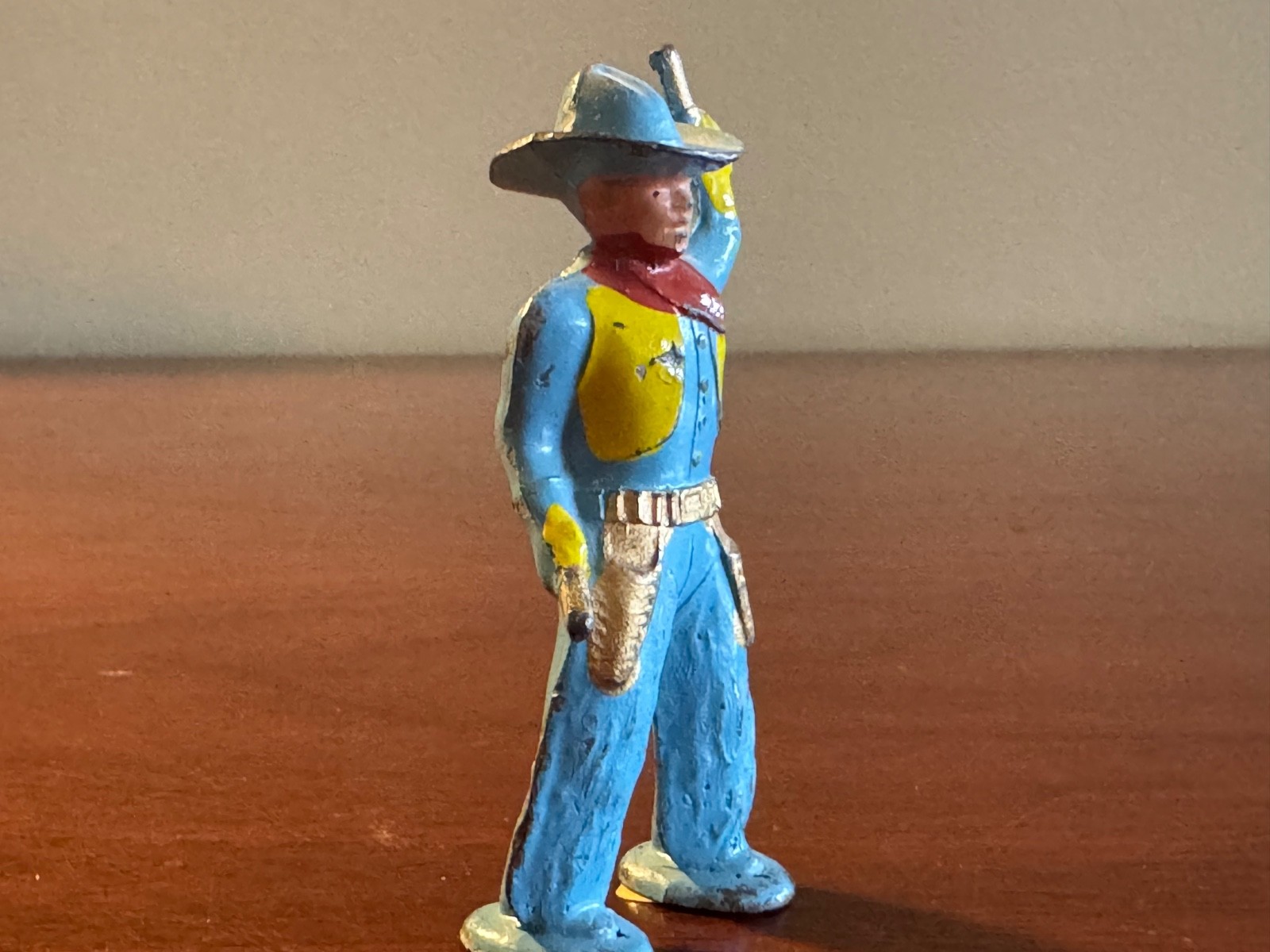 Vintage Barclay B250 95 Cowboy w/ Upraised Pistol BLUE Dime Store Toy NM