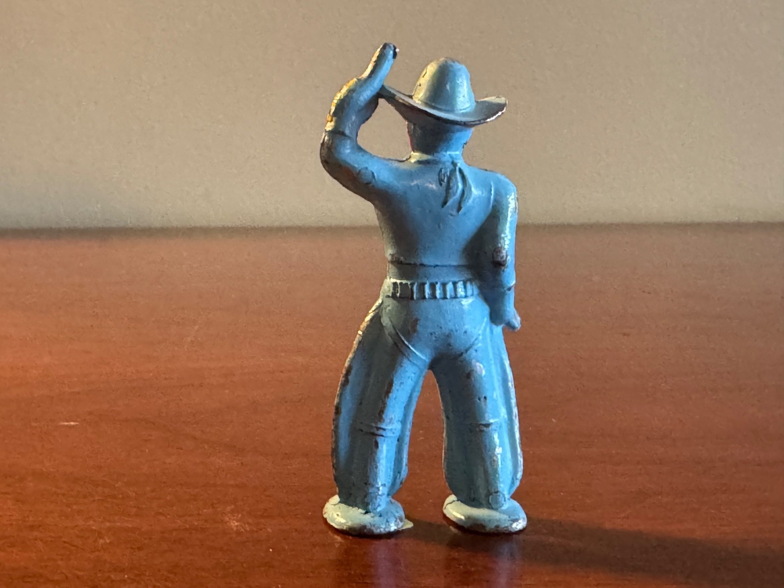 как выглядит Vintage Barclay B250 95 Cowboy w/ Upraised Pistol BLUE Dime Store Toy NM фото