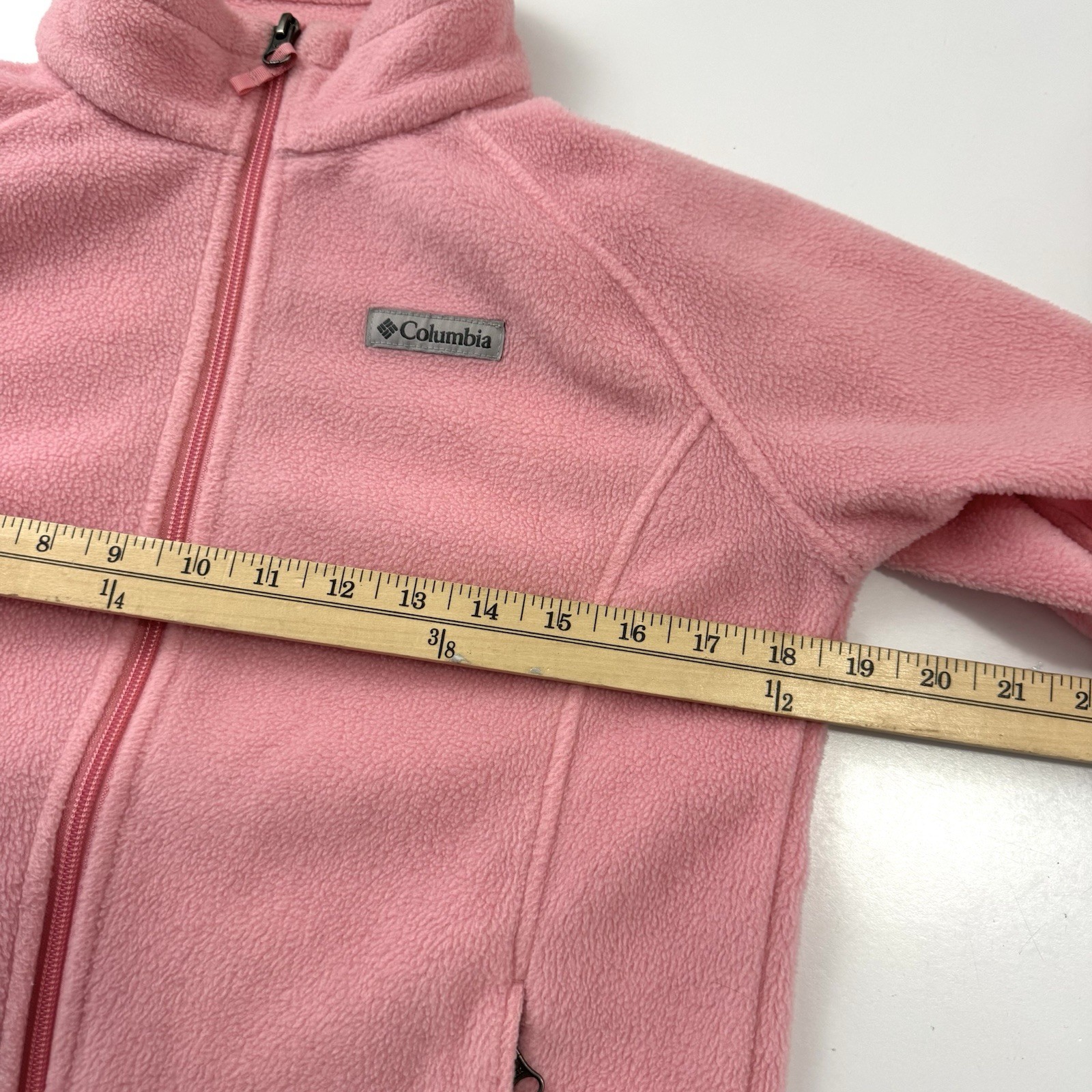 как выглядит Columbia Youth Girls Sz L 14/16 Pink Soft Fleece Full Zip Jacket Outdoorsy EUC фото