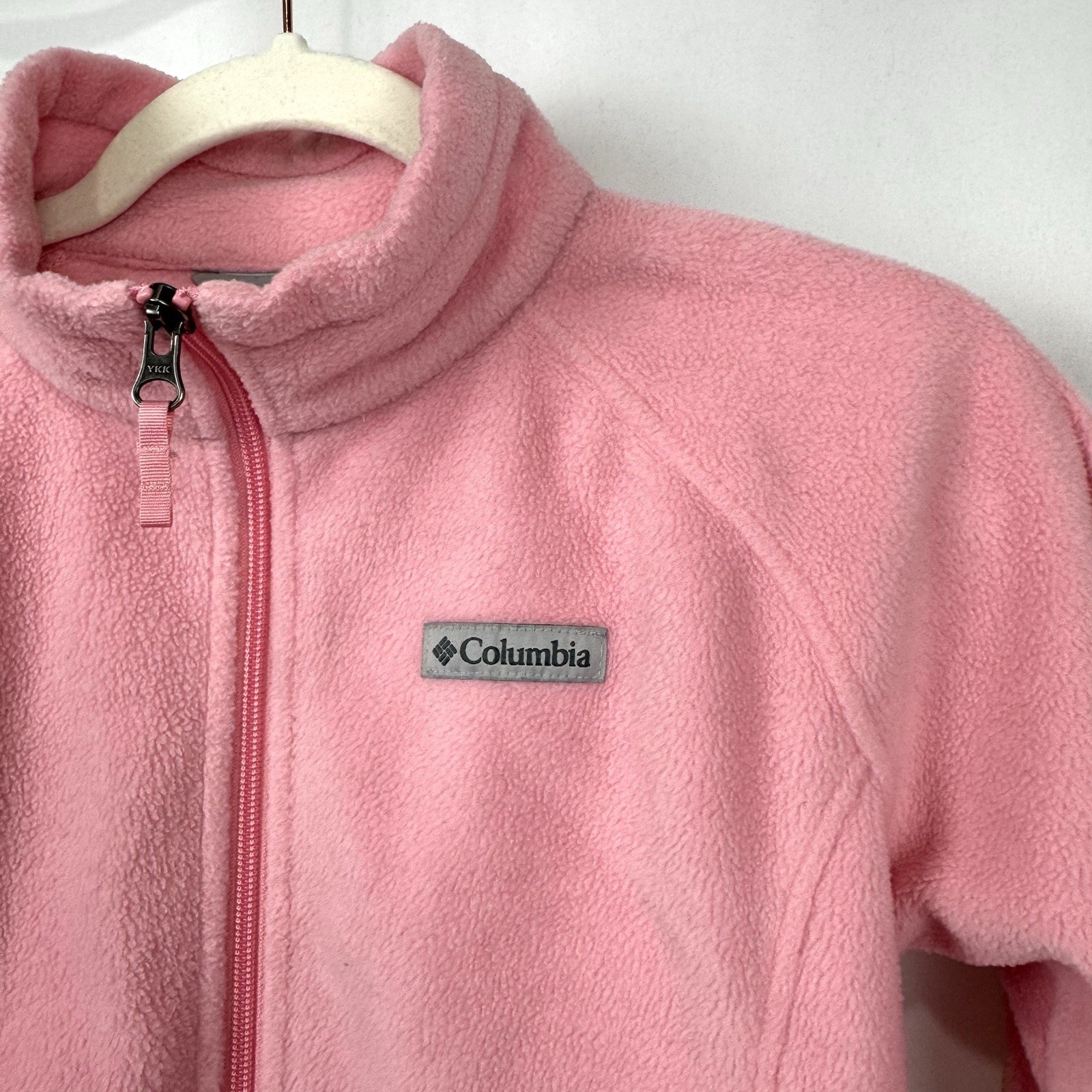 Columbia Youth Girls Sz L 14/16 Pink Soft Fleece Full Zip Jacket Outdoorsy EUC