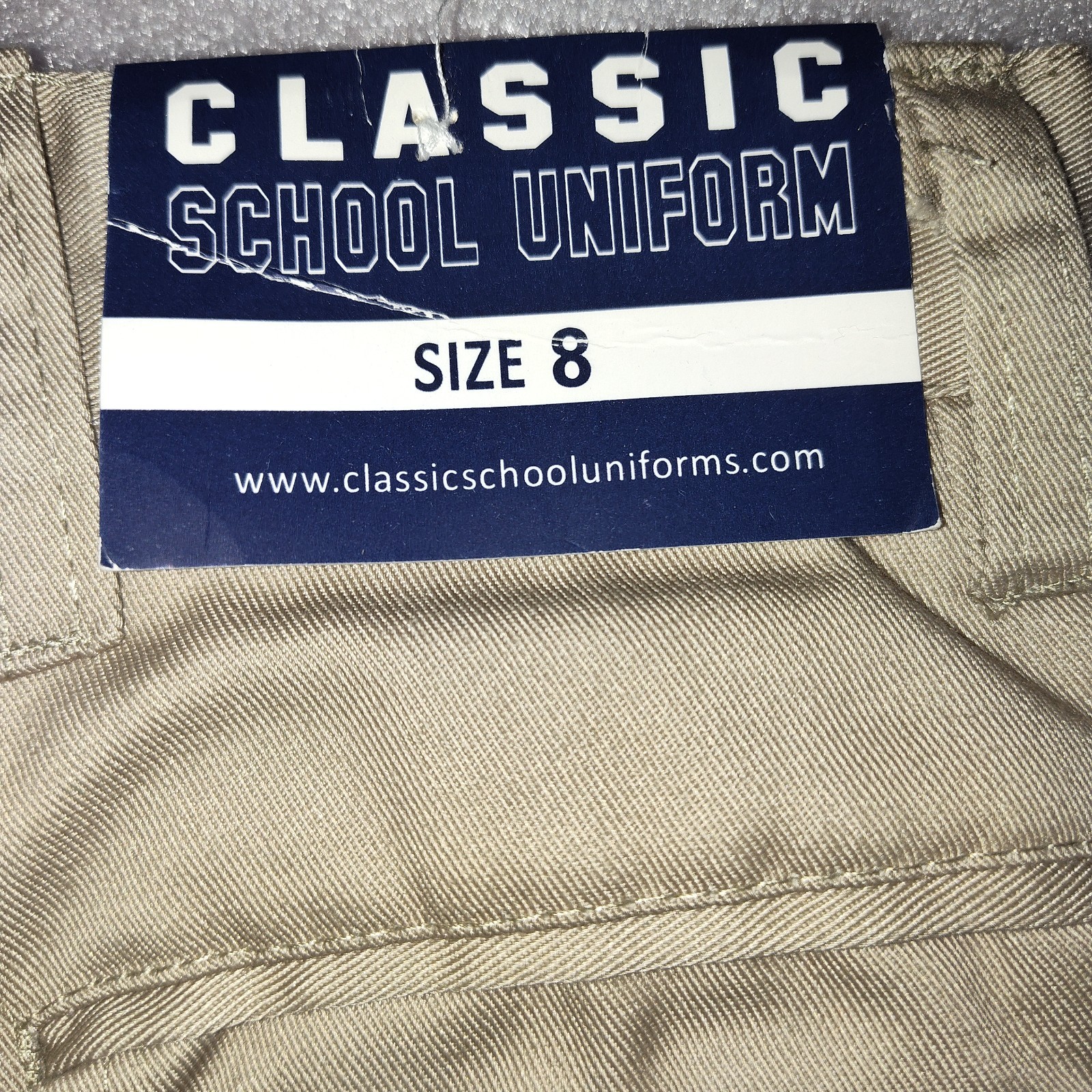 Classic School Uniform Boys Khaki Cargo Pants Size 8 Flat Front Adjustable