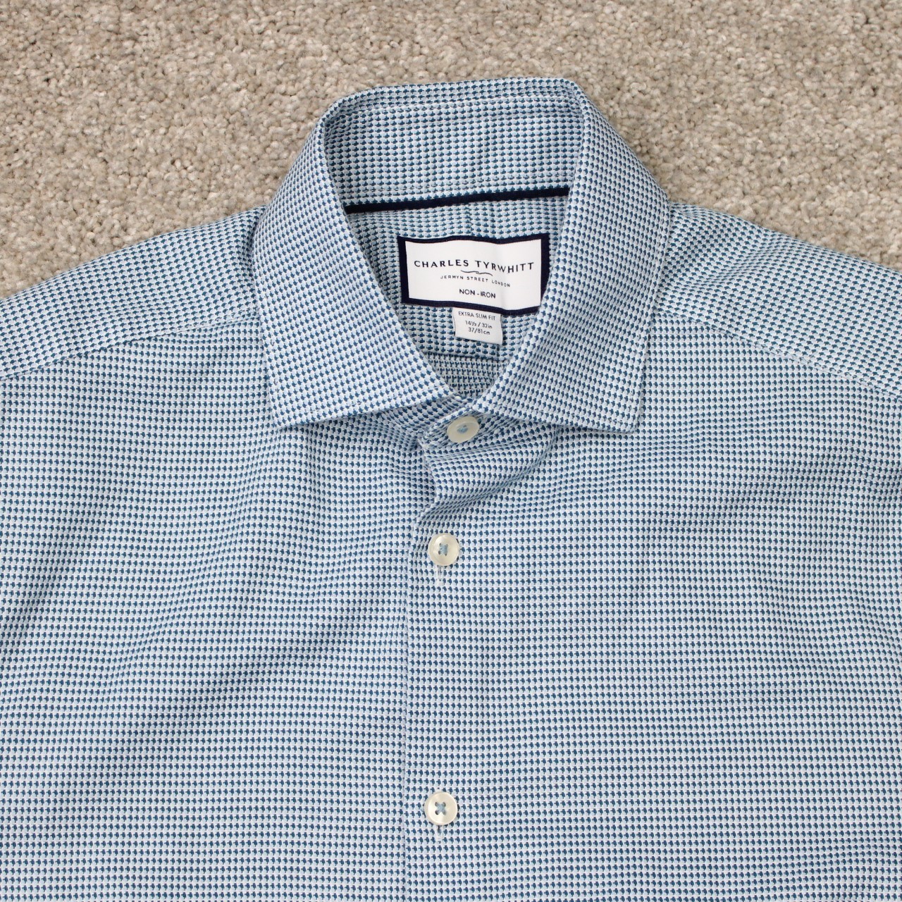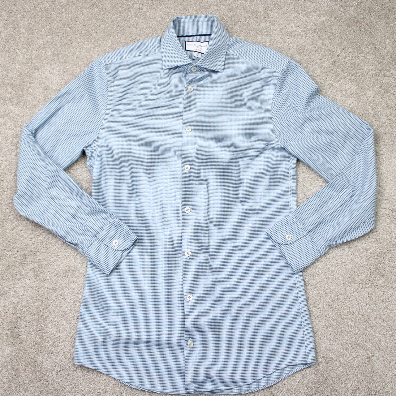 как выглядит Charles Tyrwhitt Shirt Mens 14 1/2, 32 Blue Extra Slim Fit Non-Iron Long Sleeve фото