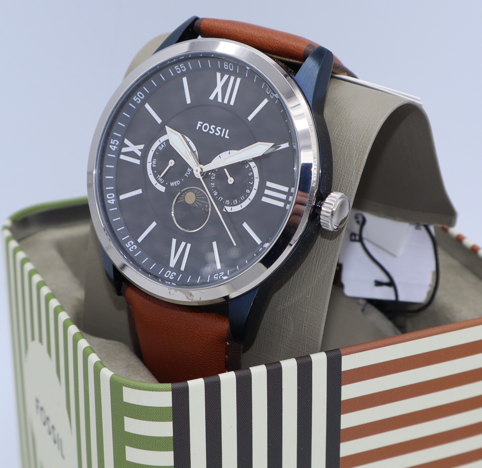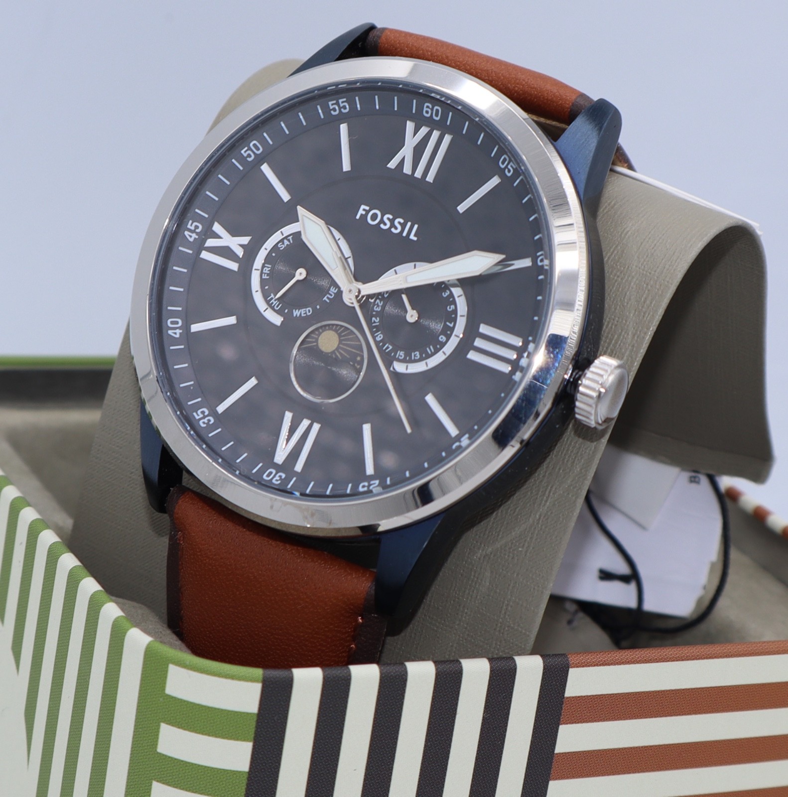 Fossil Flynn Silver Brown Leather Chronograph BQM7132 Men's Watch