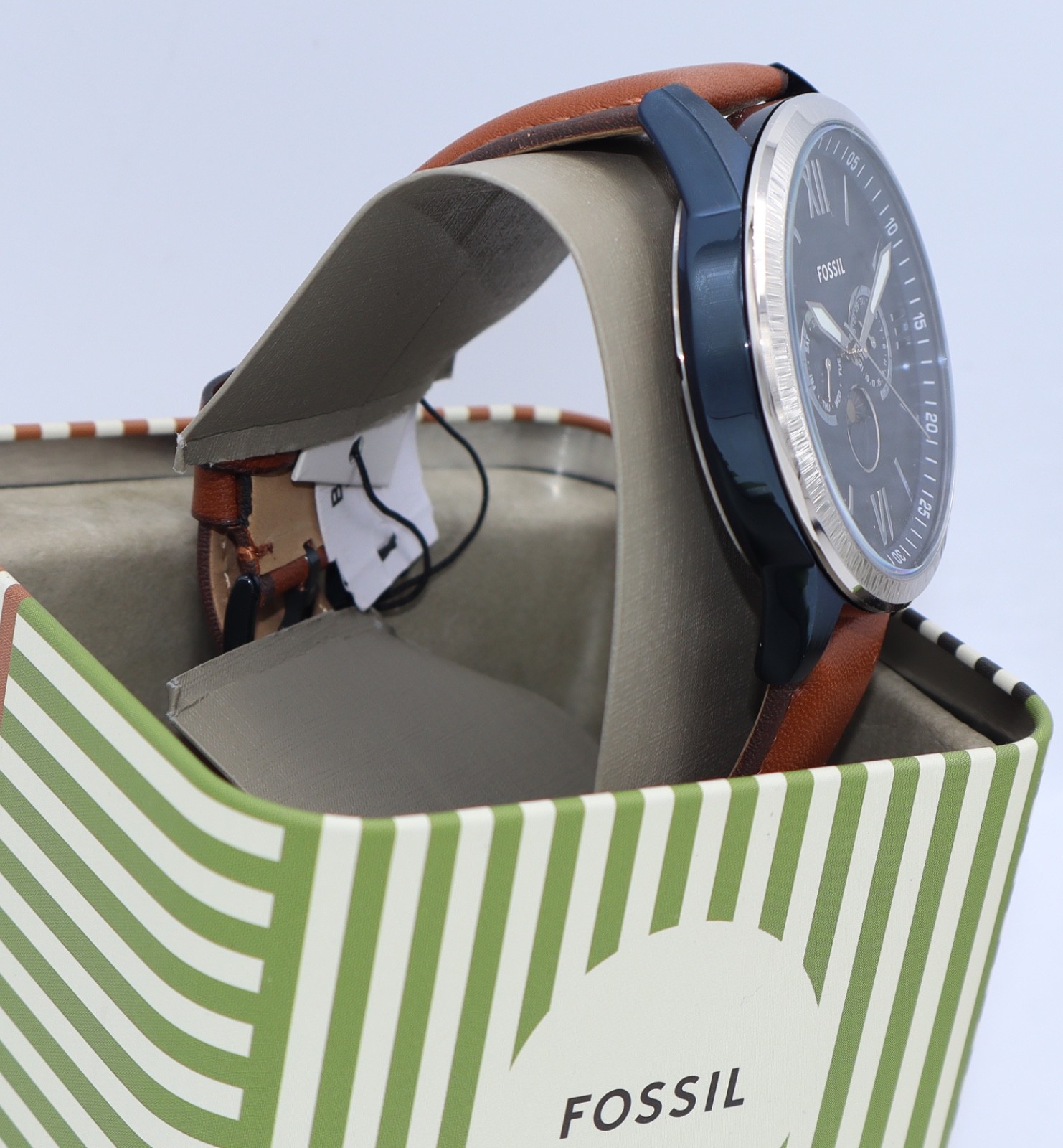 как выглядит Fossil Flynn Silver Brown Leather Chronograph BQM7132 Mens Watch фото