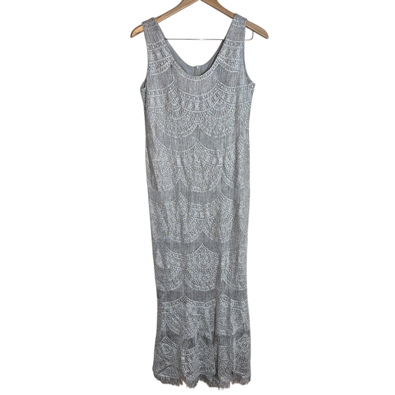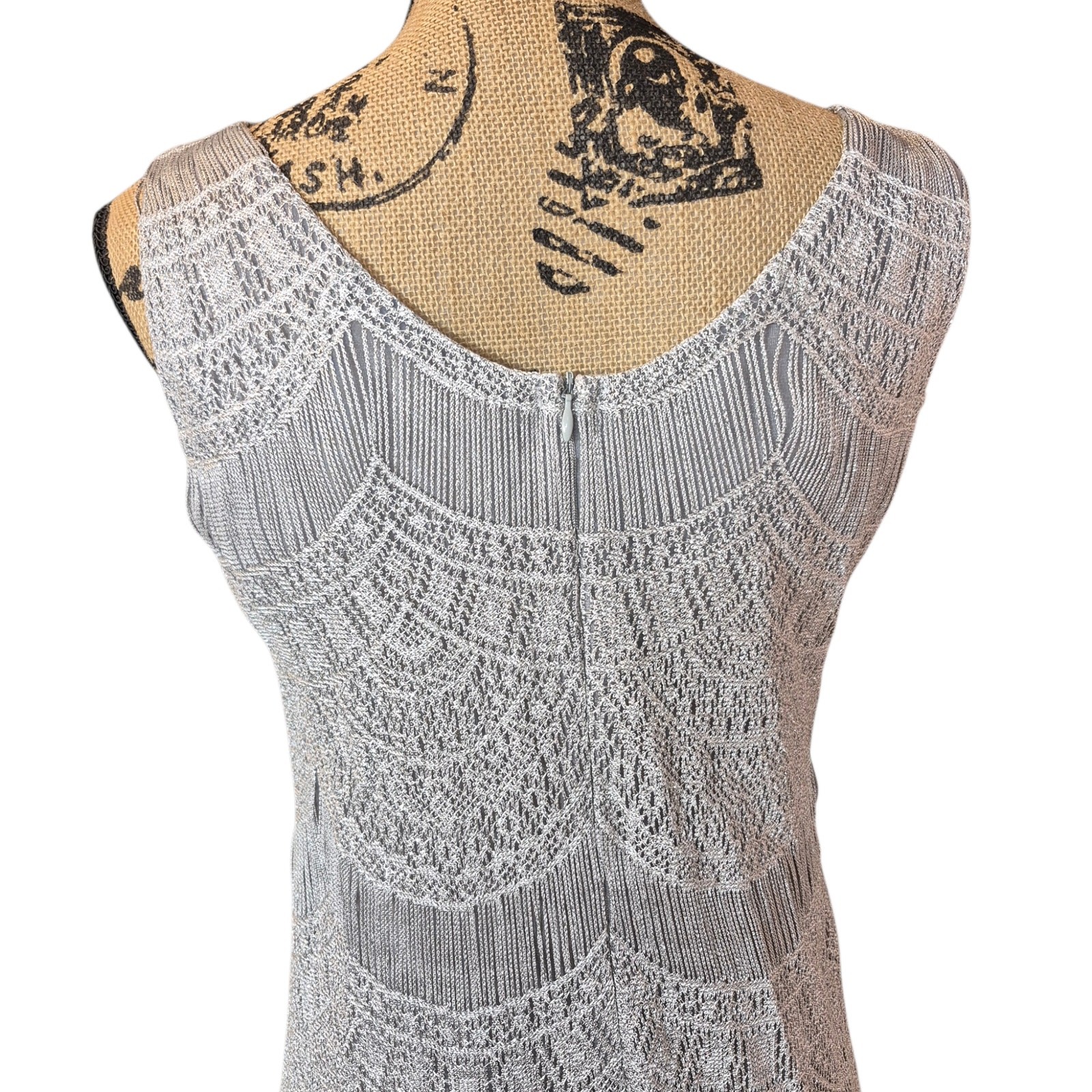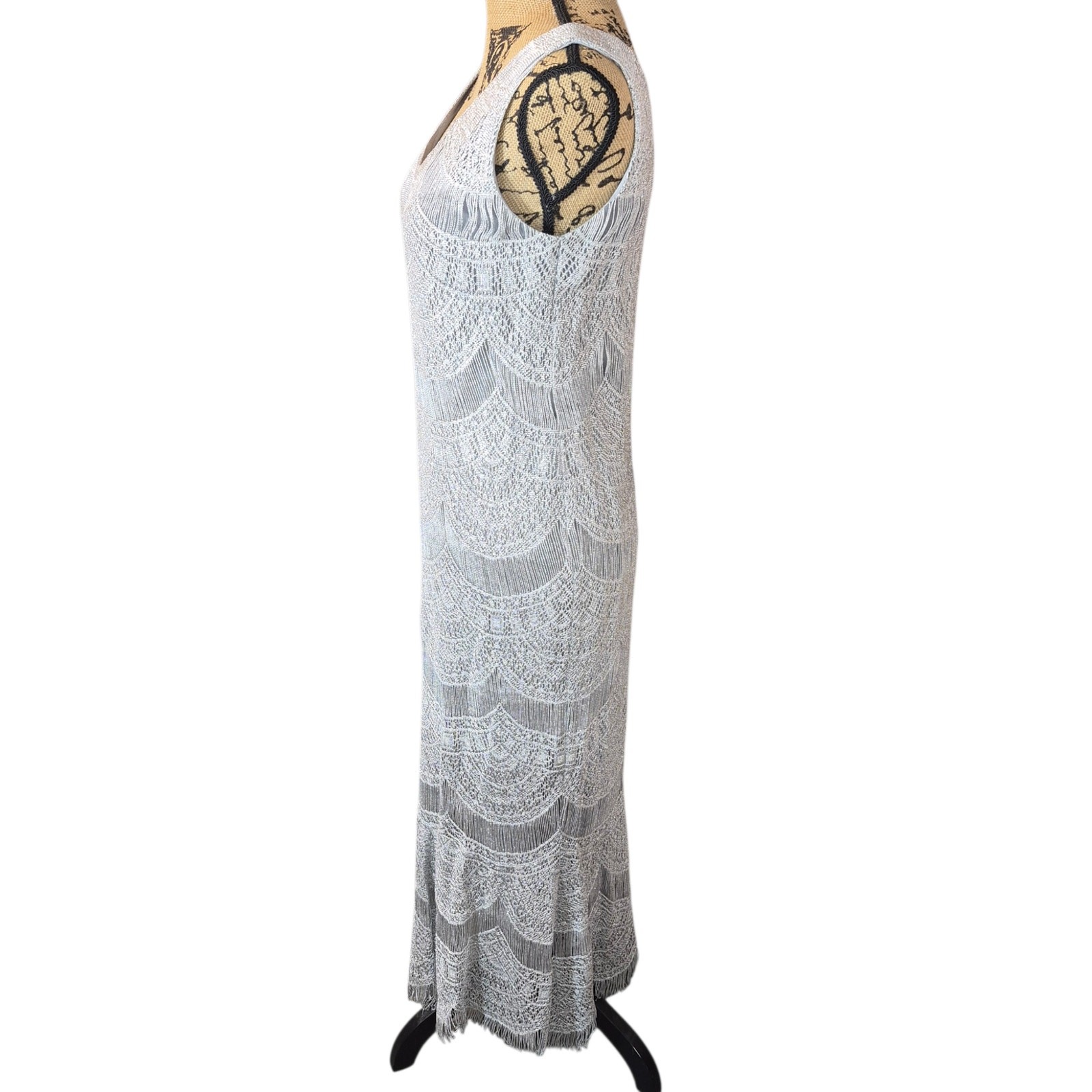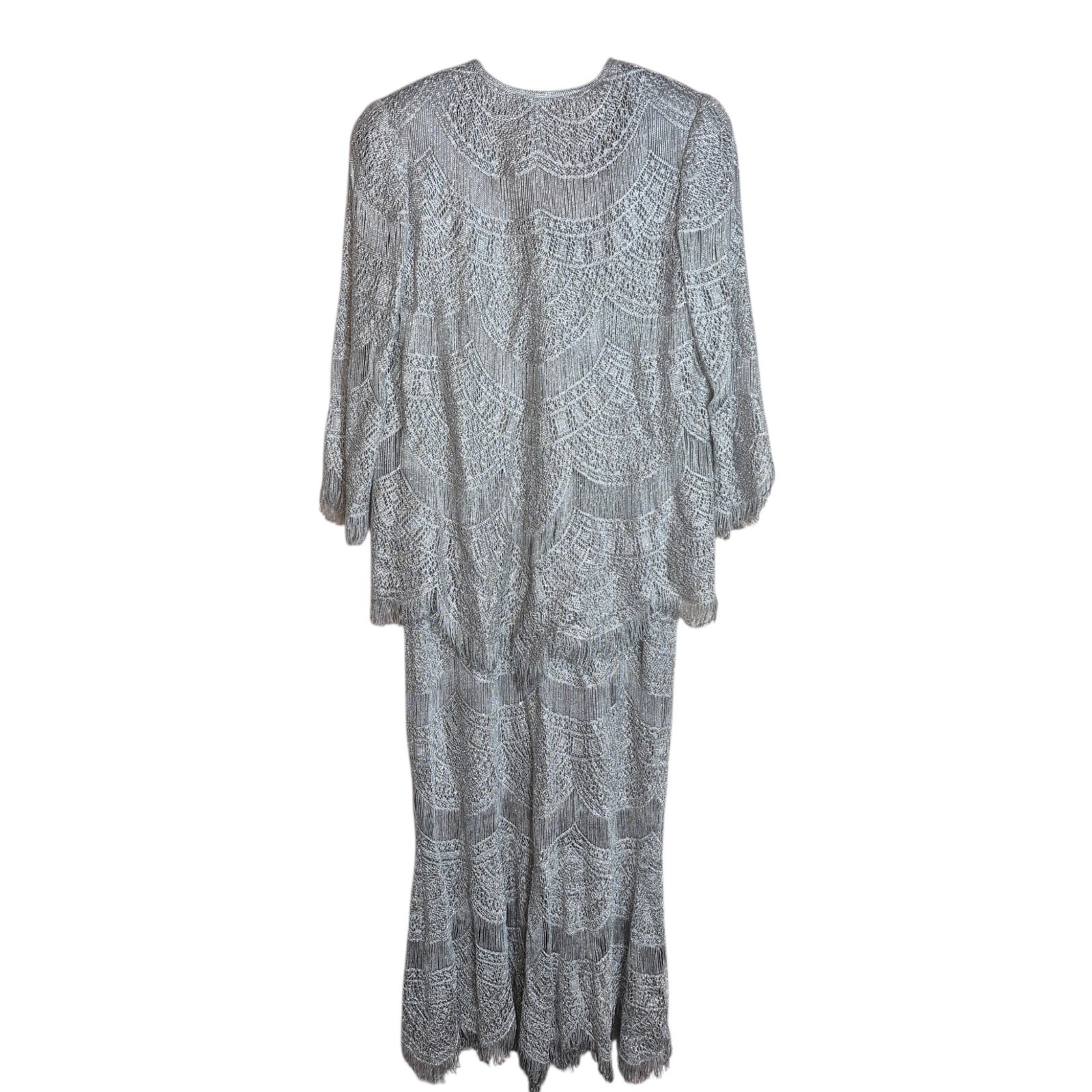 как выглядит VTG Damianou 2pc Mother of the Bride Metallic Crocheted Lace Dress Gatsby Style фото