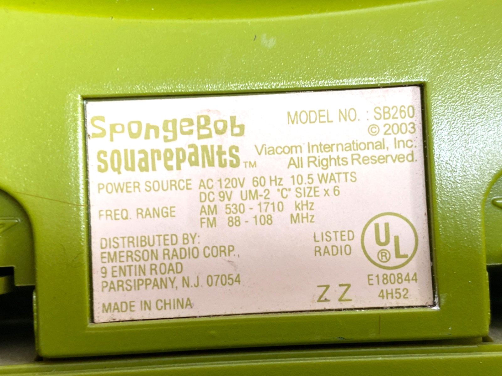 2003 SPONGEBOB SQUAREPANTS retro boombox AM/FM RADIO and CD DISC PLAYER SB260