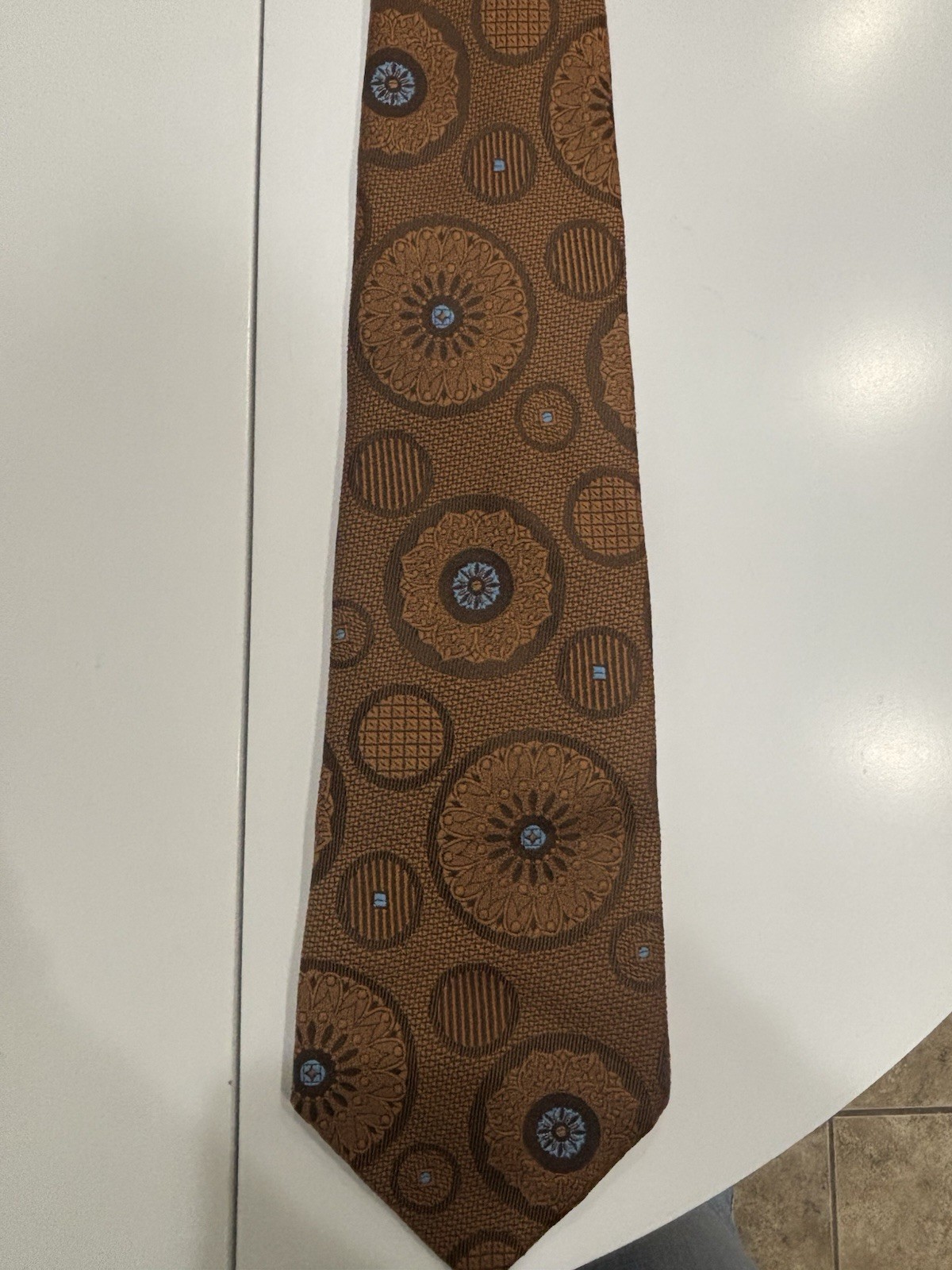 как выглядит Vintage Wemlon By Wembley Neck Tie Geometric Abstract Brown/Blue 56"x4" Retro фото