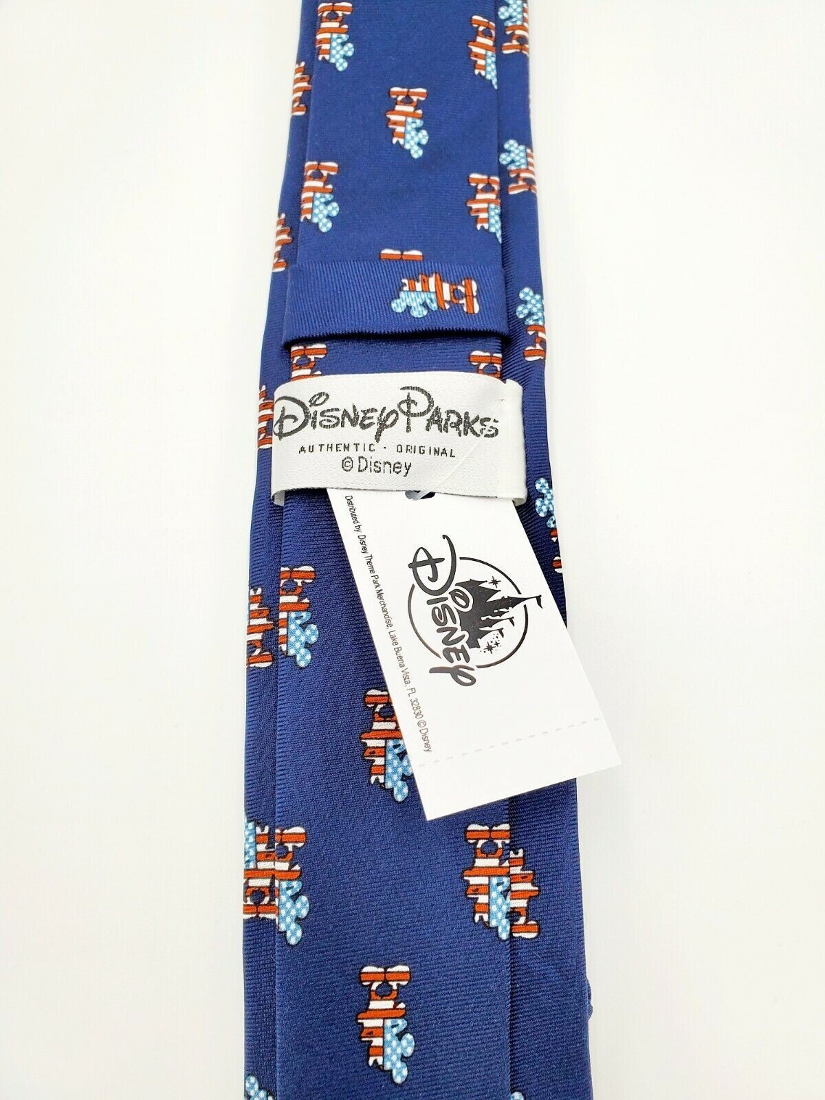 • Disney Parks Mickey Mouse Navy Blue White Red Americana Flag Silk Tie NWT
