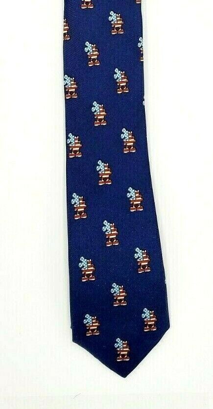 Disney Parks Mickey Mouse Navy Blue White Red Americana Flag Silk Tie NWT