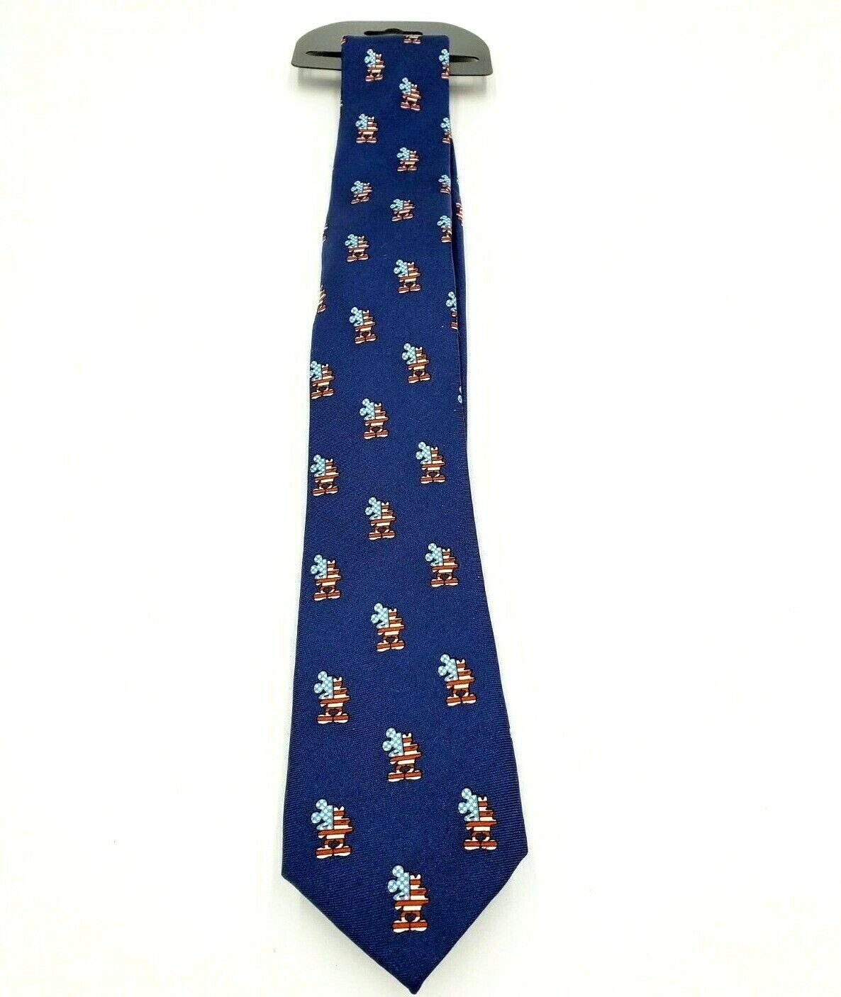 как выглядит Disney Parks Mickey Mouse Navy Blue White Red Americana Flag Silk Tie NWT фото