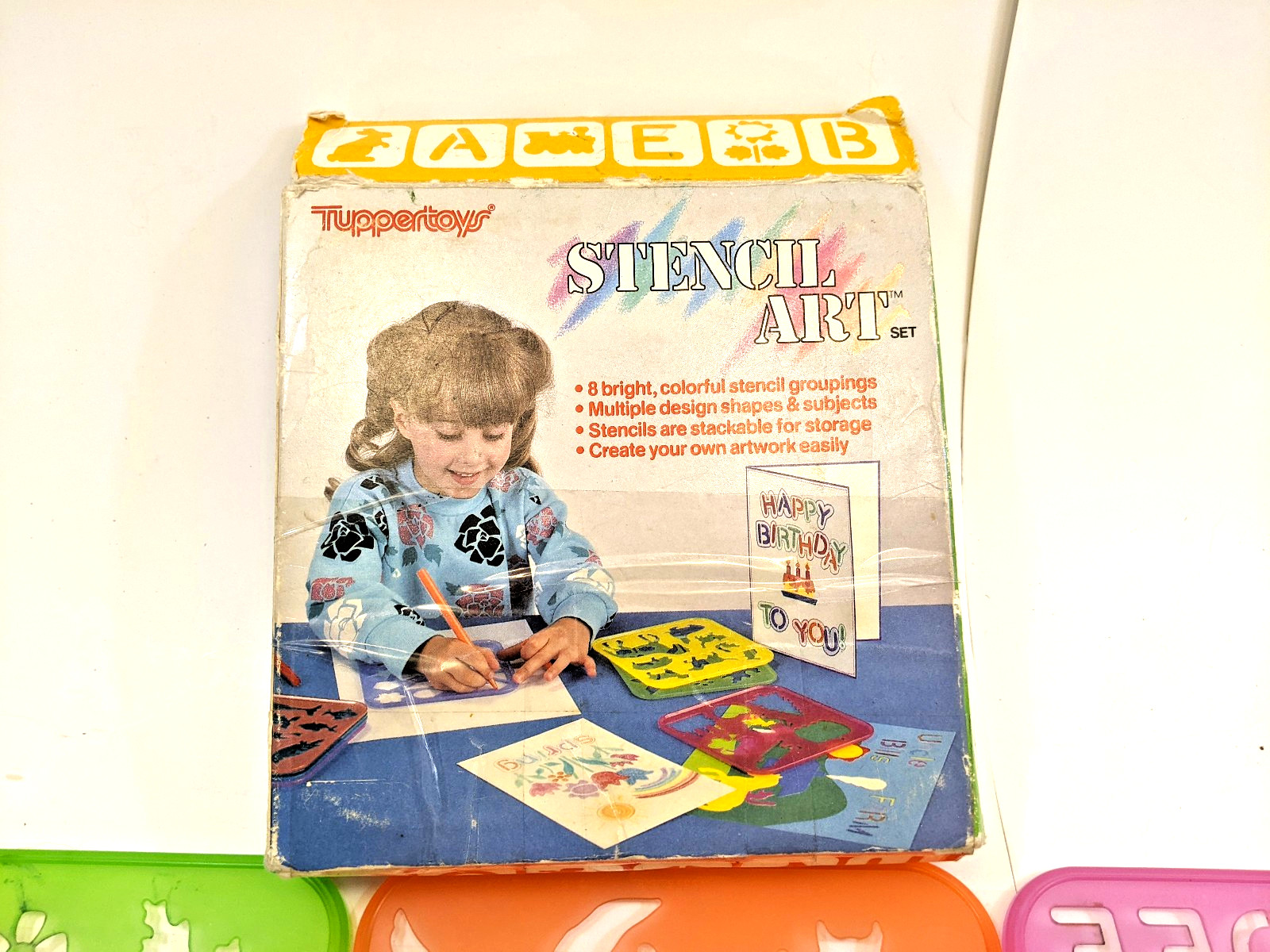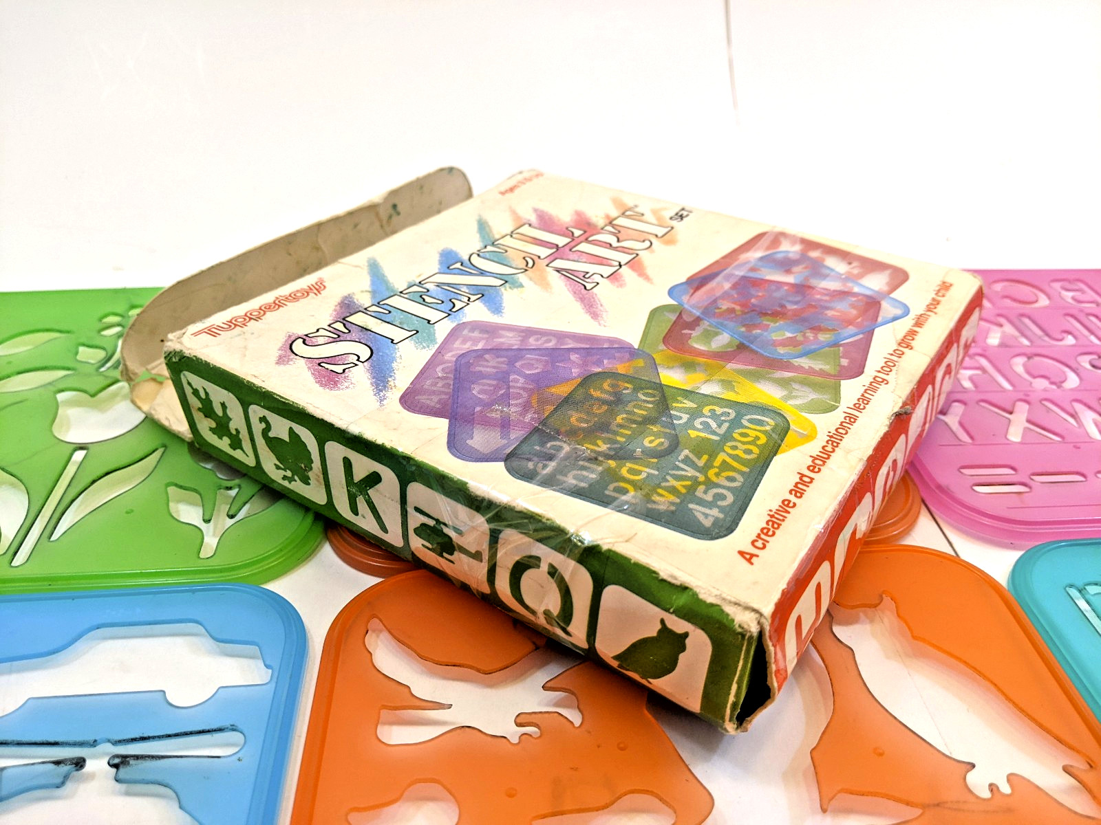 как выглядит Vintage Tupperware Tuppertoys Stencil Art Set 1987 7 Stencils in Original Box фото