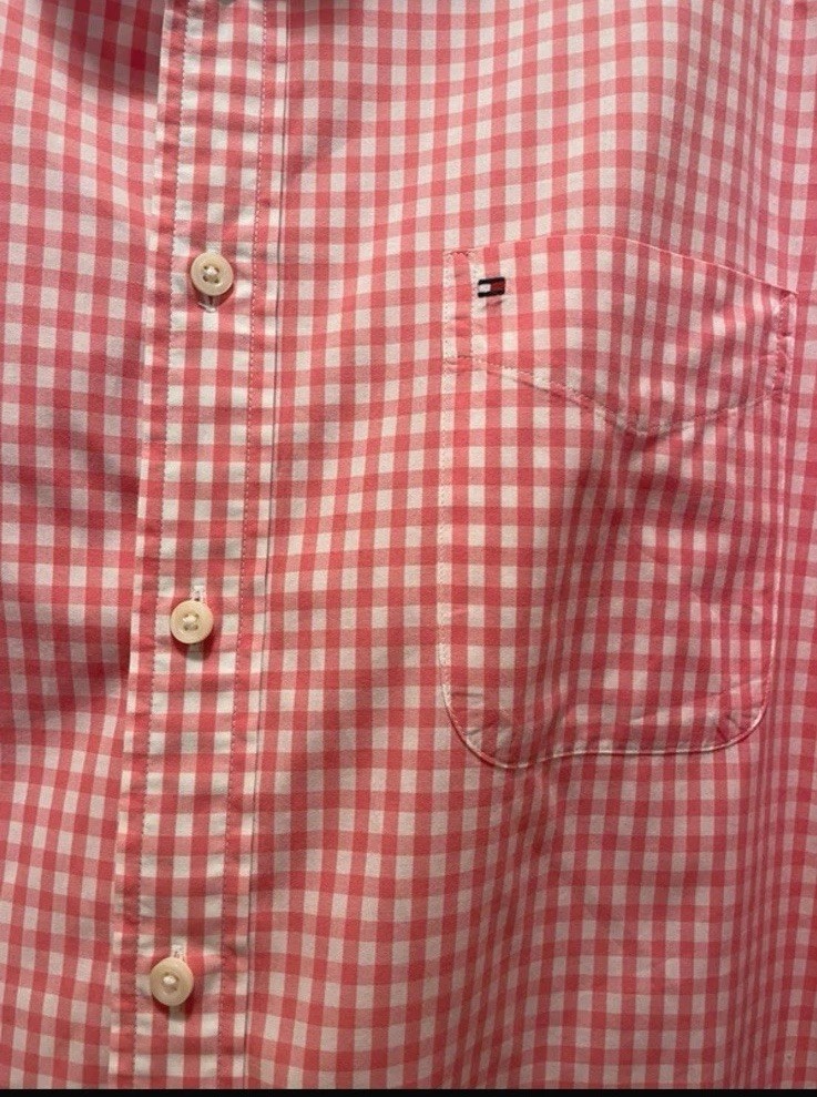 как выглядит Tommy Hilfiger Classic Fit Button Down Shirt Men s Large Pink Gingham Cotton фото