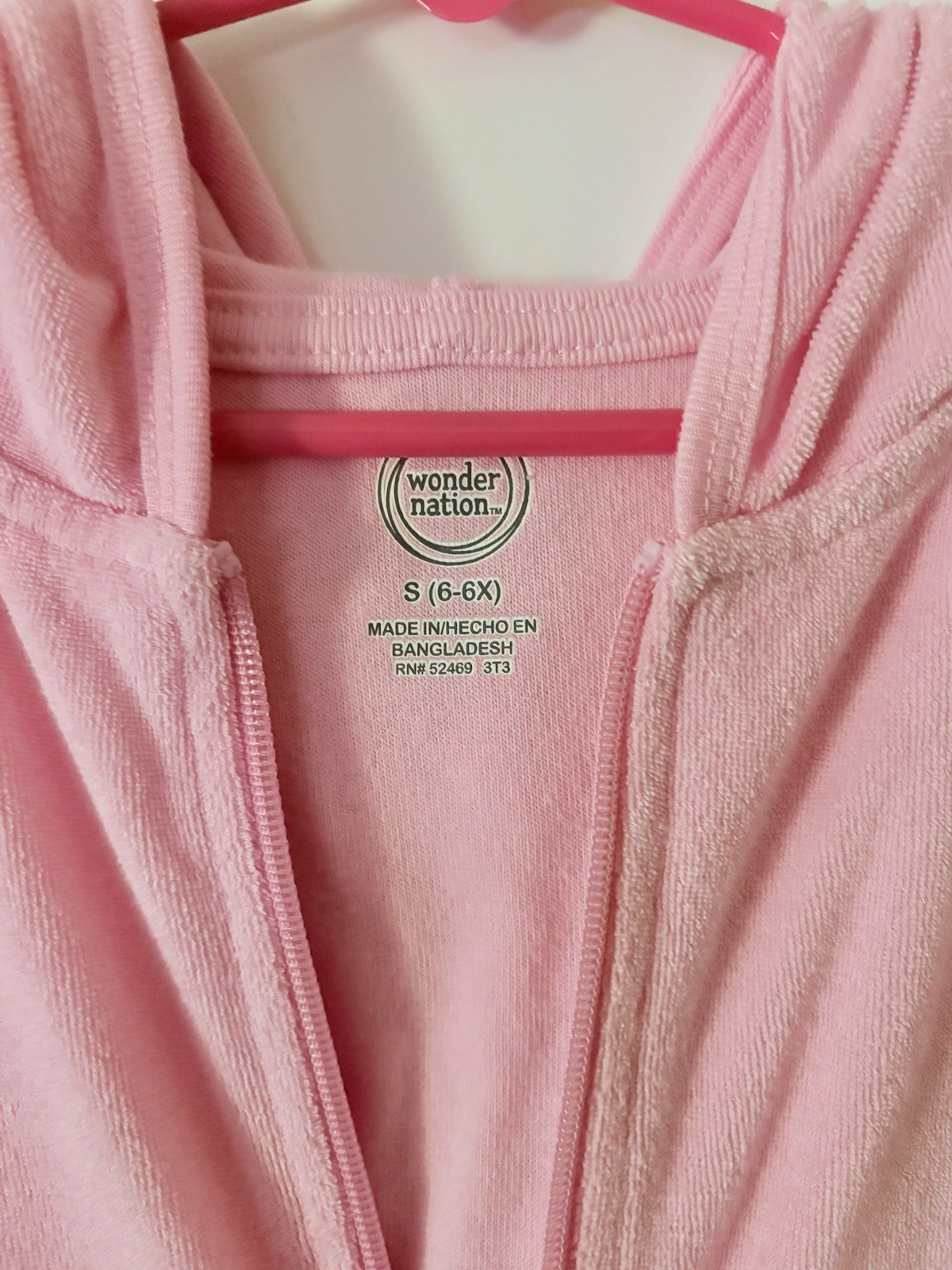 как выглядит Wonder Nation Girls Pink Terry Cloth Swim Suit Cover Up Full Zip, Hood, Sz 6/6x фото