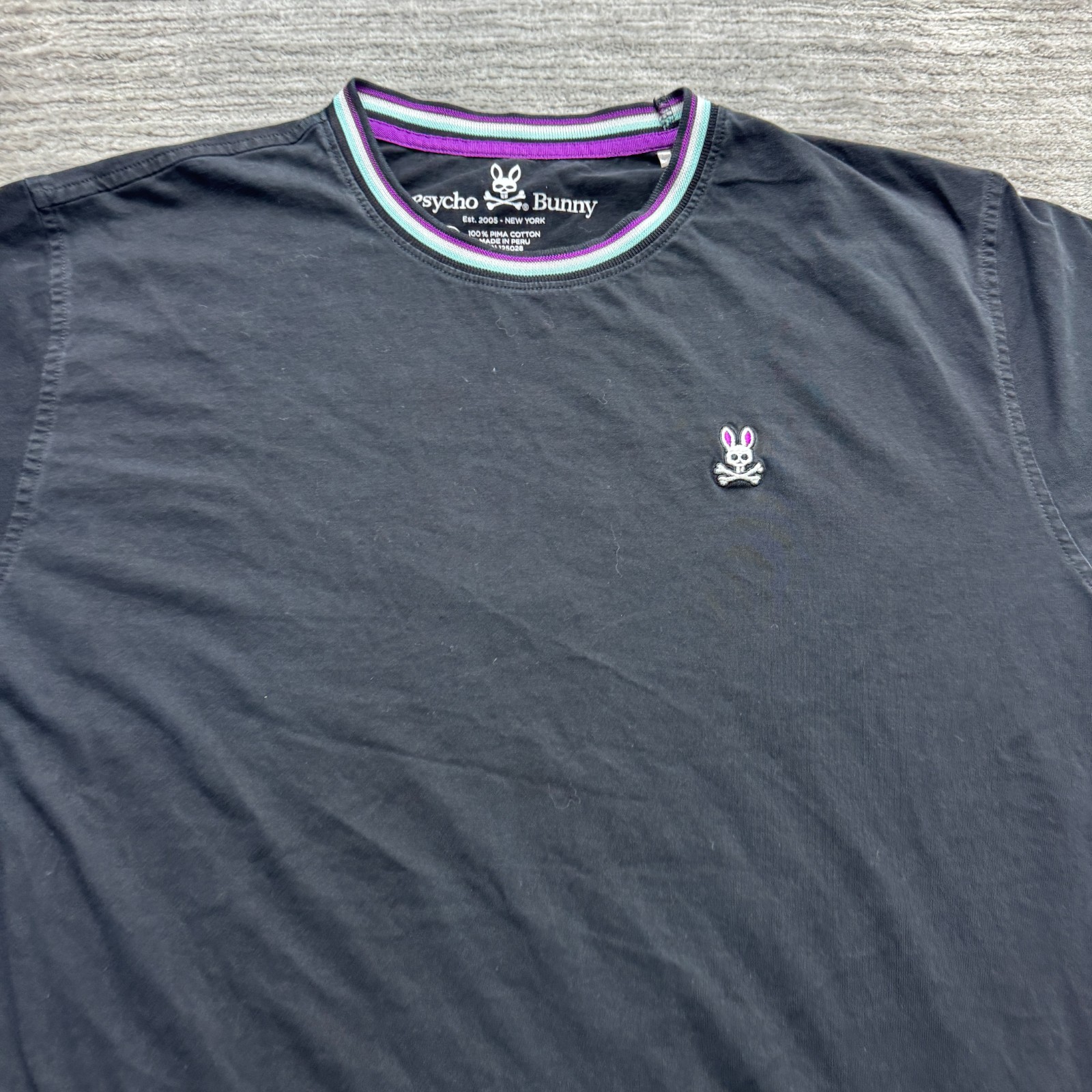 Psycho Bunny Shirt Size 7 Mens Pima Cotton Logo Graphic Tee T-shirt Black
