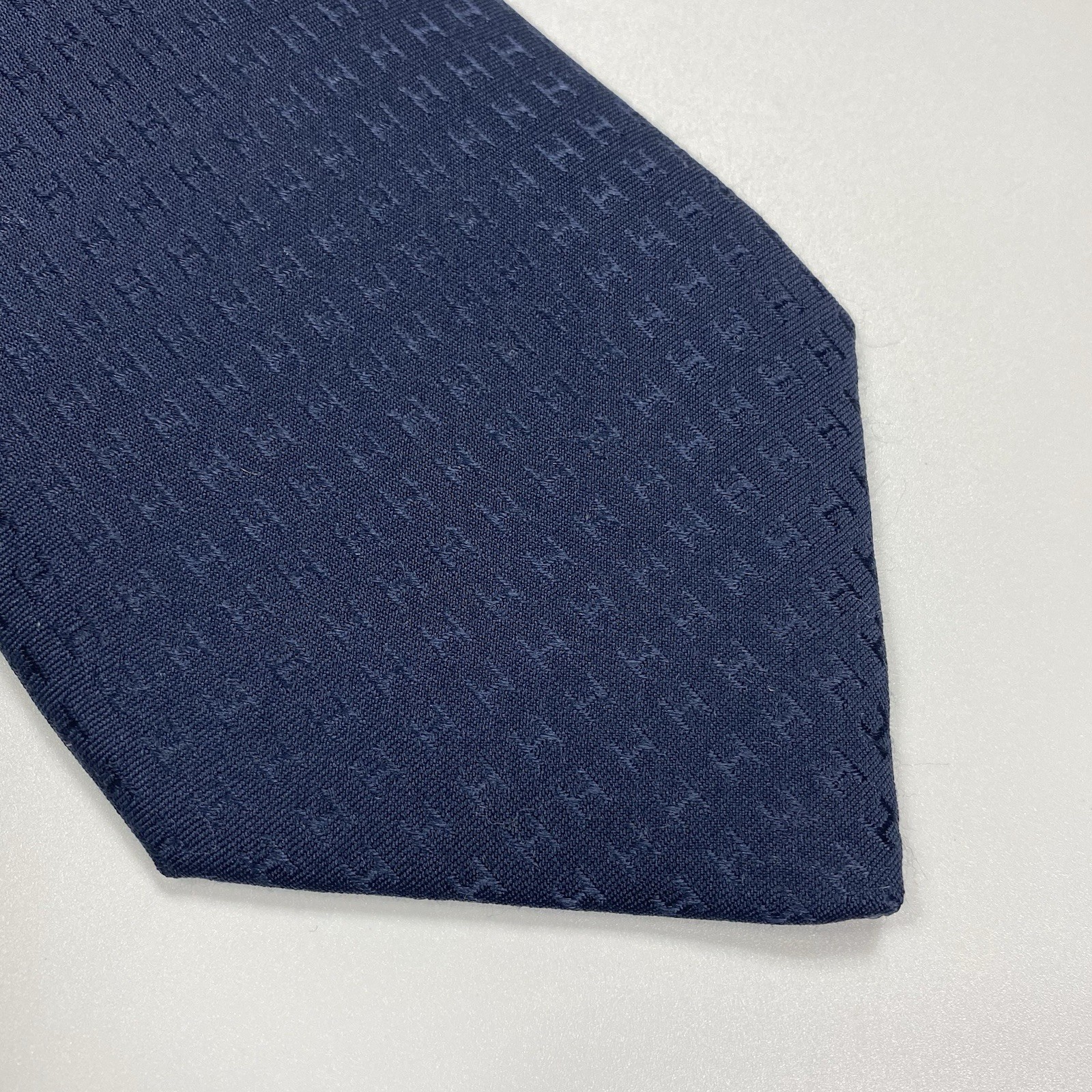HERMES H-pattern Tie Faconne Navi Blue Mens Silk