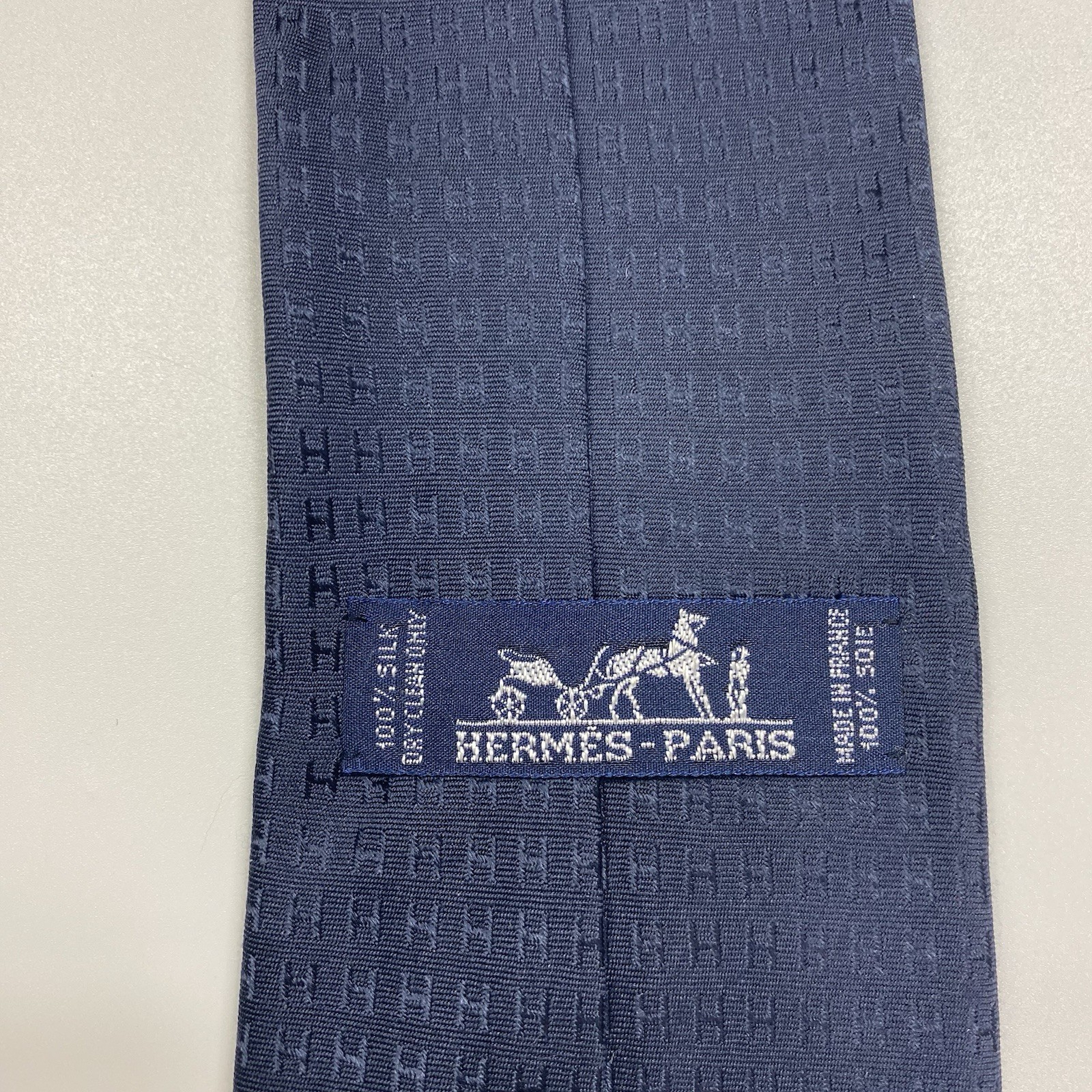 как выглядит HERMES H-pattern Tie Faconne Navi Blue Mens Silk фото