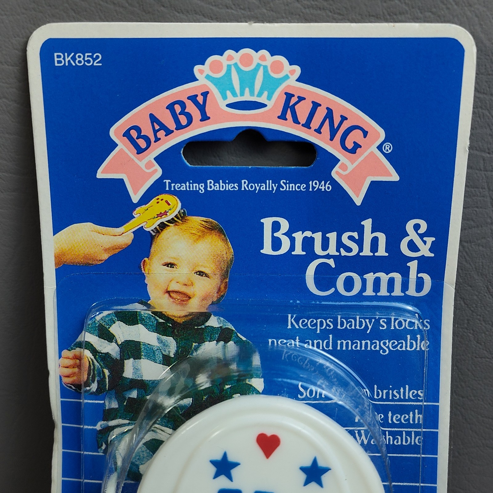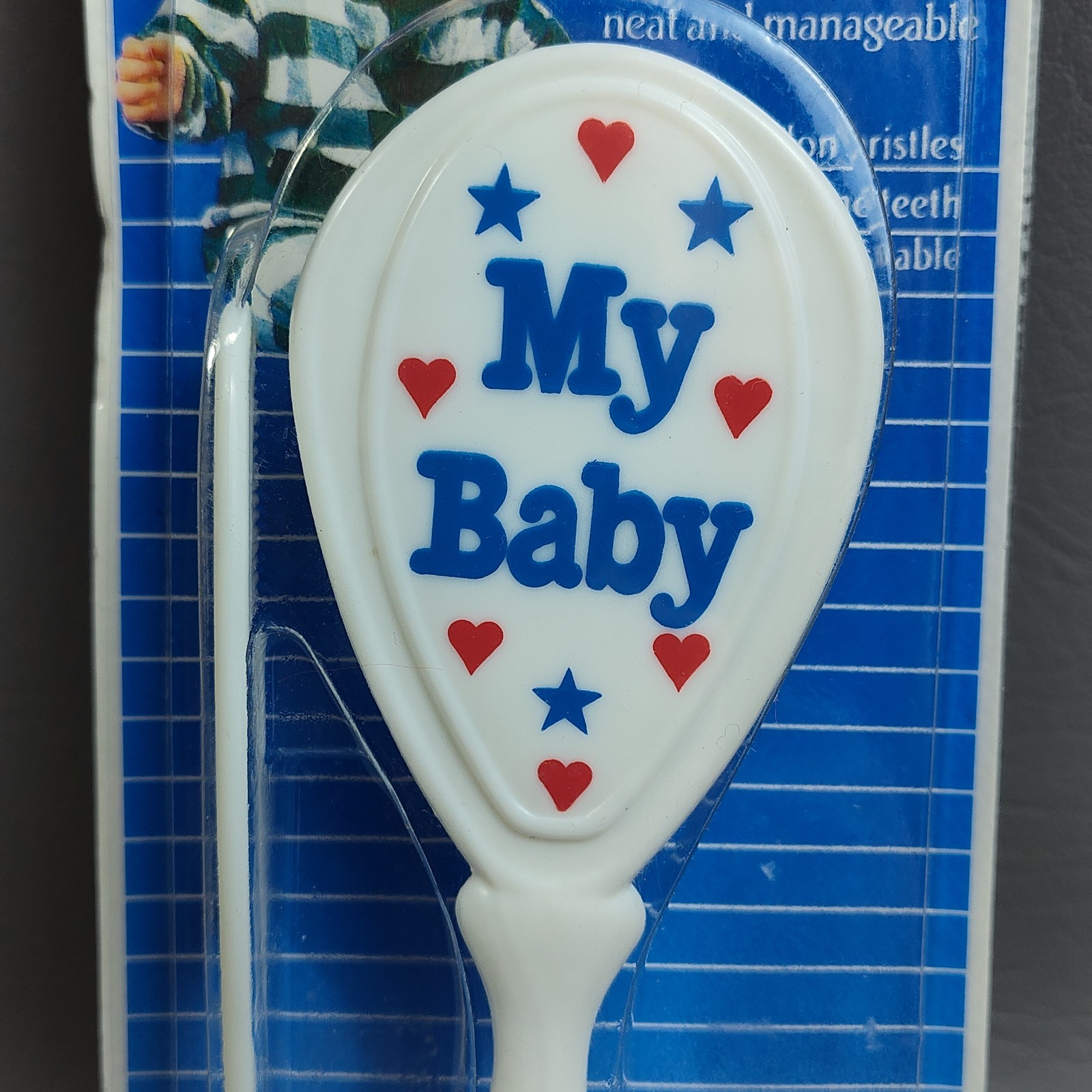 как выглядит Vintage Baby King Baby Brush Comb Set NOS 1997 "My Baby" White Stars Hearts фото