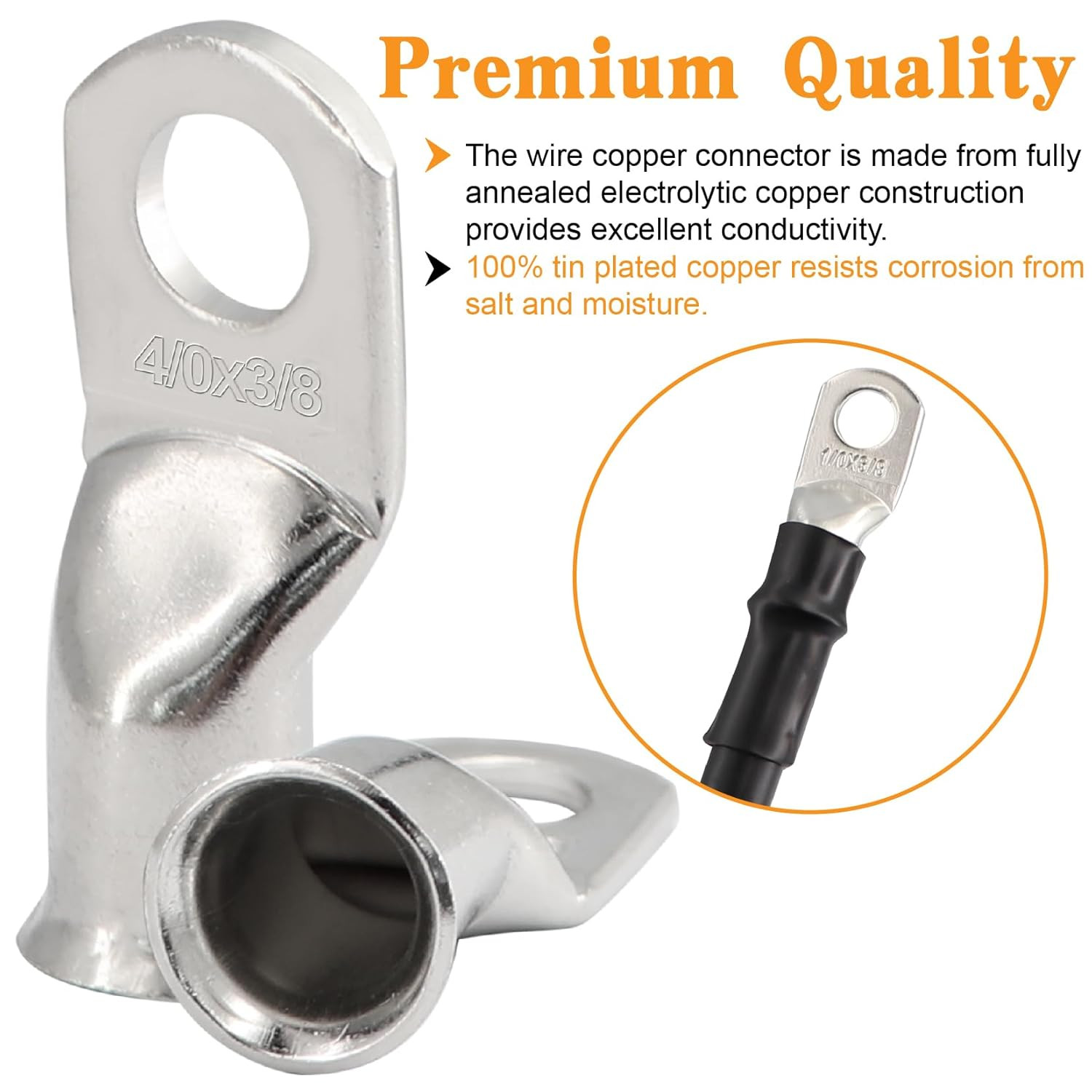 48PCS Battery Tinned Terminal Connectors Cable Ends,Awg 1/0 2/0 3/0 4/0 Crimp Co