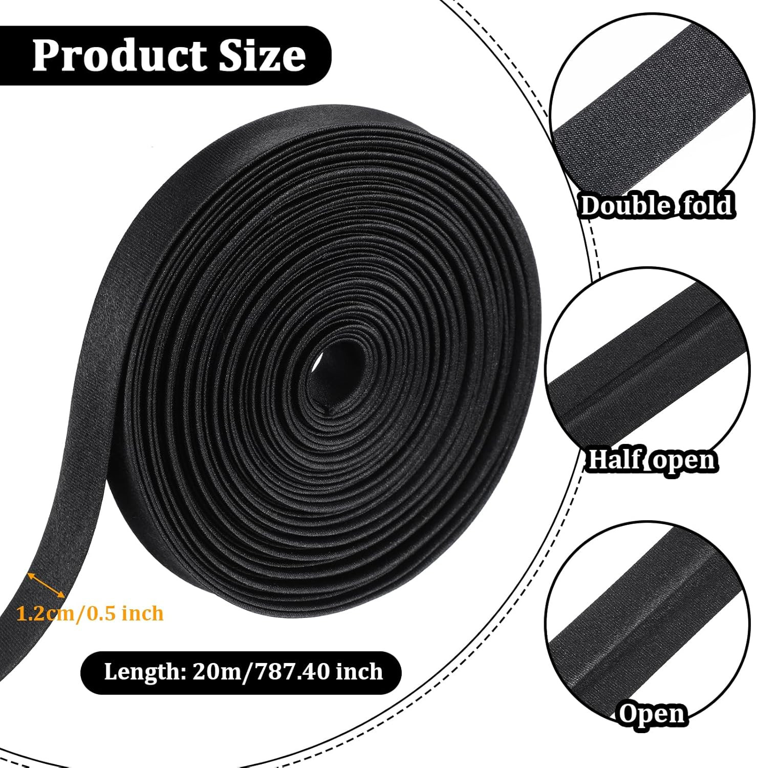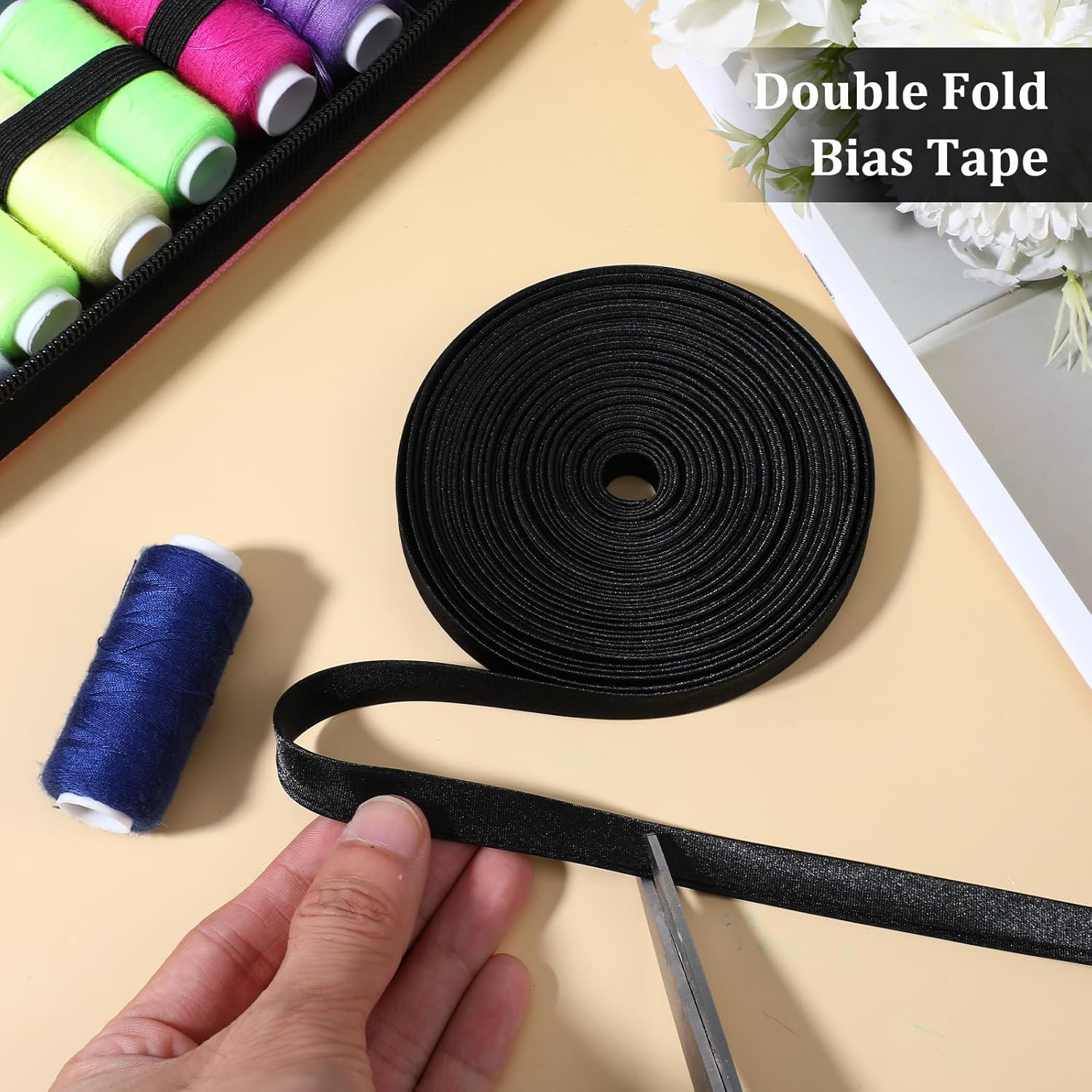 1/2 Inch Double Fold Bias Tape, 21 Yards Bias Binding Tape Continuous BiasBin...